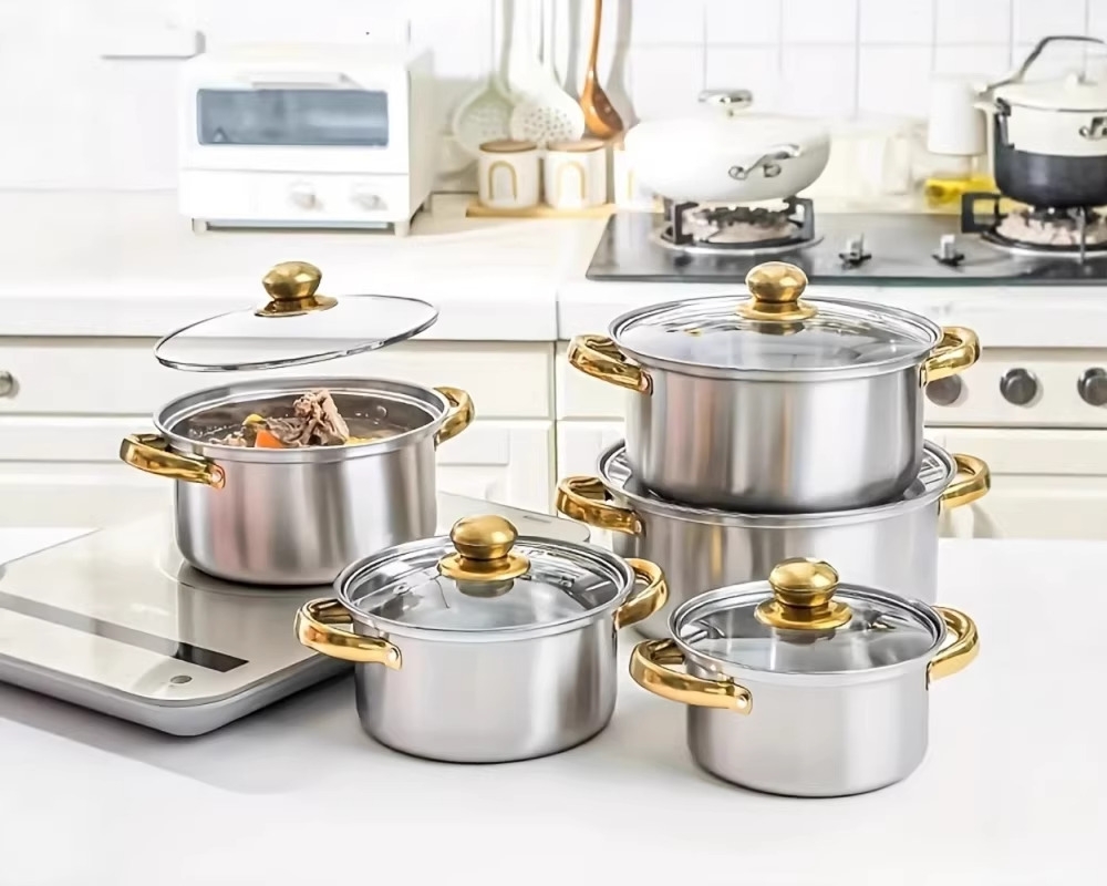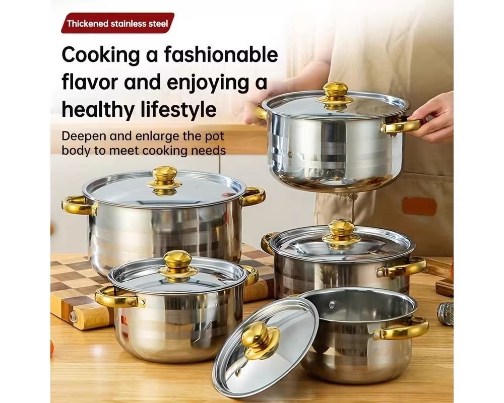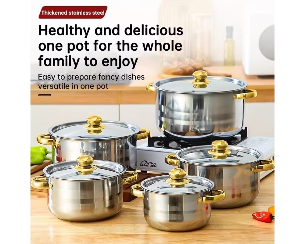 Includes a multi-purpose soup pot with lid, frying pan, wok, and stew pot—ideal for daily cooking, meal prep, outdoor grilling, and camping.