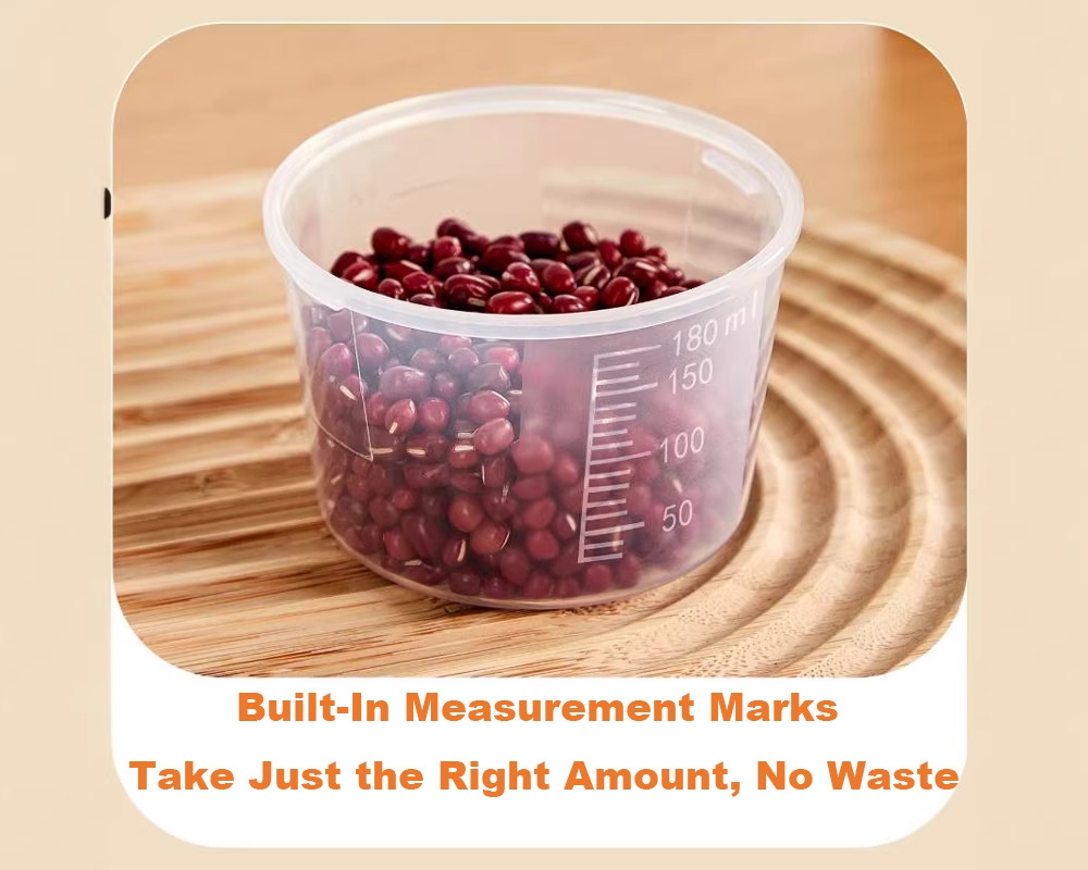Built-In Measuring Cup Includes a secure measuring cup that fits neatly into the lid, providing quick and easy access for portion control without opening the container.