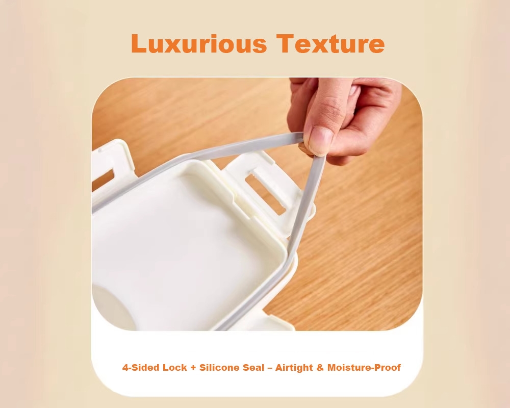 Airtight Freshness Seal Equipped with snap-lock latches and silicone gaskets to create an airtight seal, keeping your stored food fresh and protected from moisture and pests.