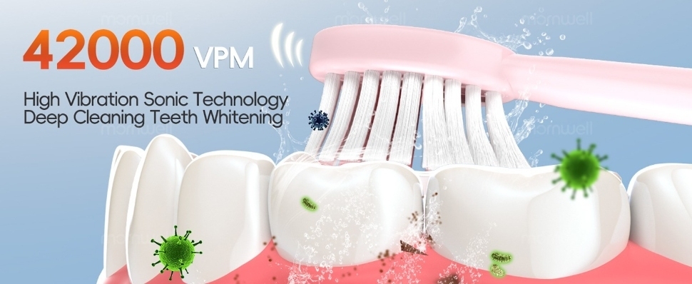 High-frequency technology effectively breaks down plaque and cleans hard-to-reach areas thoroughly.