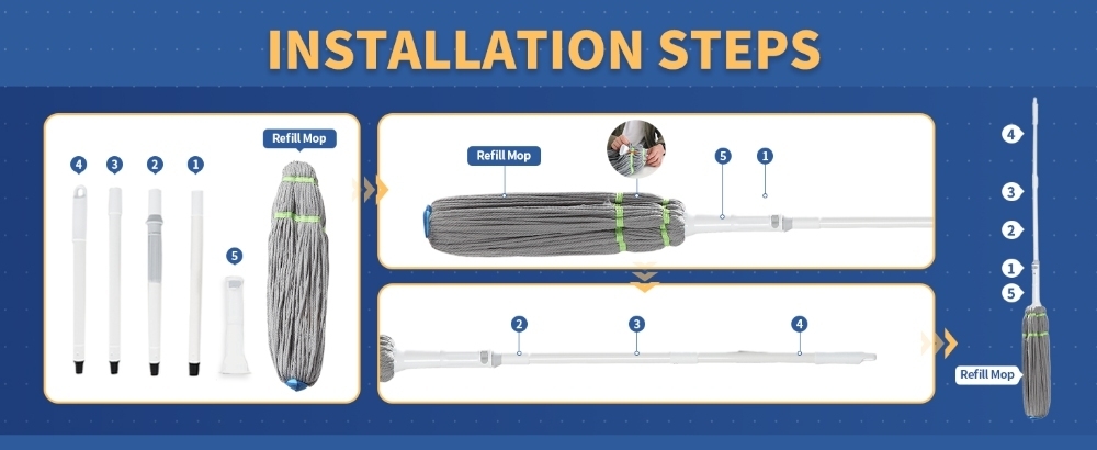 Durable & Long-Lasting Construction Sturdy handle and high-quality mop head ensure reliable performance through repeated use, making daily floor cleaning faster and easier.