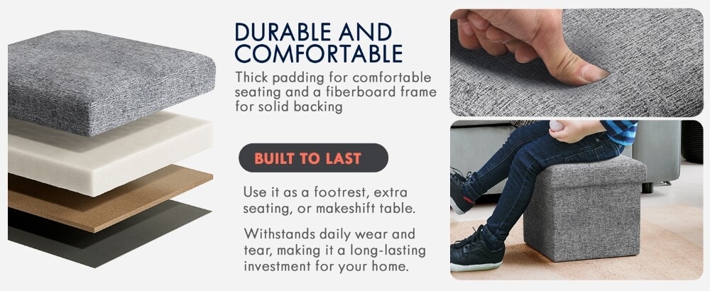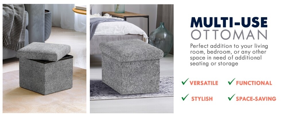Functions as a footrest, extra seat, and hidden storage solution for any room.