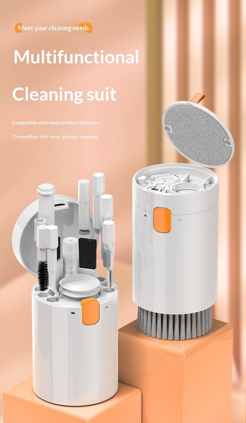 Multi-purpose Cleaning Kit: Electronic cleaning kit includes cleaning pen with metal tip, sponge brush, mini soft brush, round brush, keyboard brush, keycap puller, switch puller, spray bottle, fiber fleece swipe, air blower with long and short nozzles, lens cleaning pen with soft pad, hard bristled brush and soft-bristled brush, and a card remover. The cleaner kit can efficiently clean laptops, keyboards, headphones, screens, phones, etc.