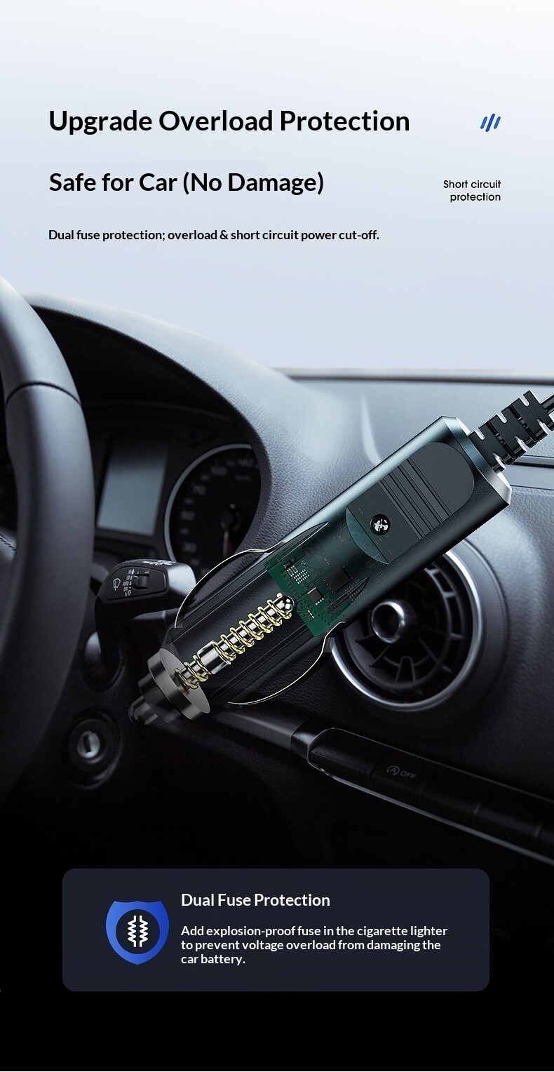 【EASY TO USE&AUTO SHUT OFF】:Plug portable air compressor power cable into the car's 12V power outlet, then press the inflation nozzle into the tire valve,set the pressure value required by the tire and press the switch to start inflating. The air compressor pump will automatically shut off when reaching desired tire pressure.