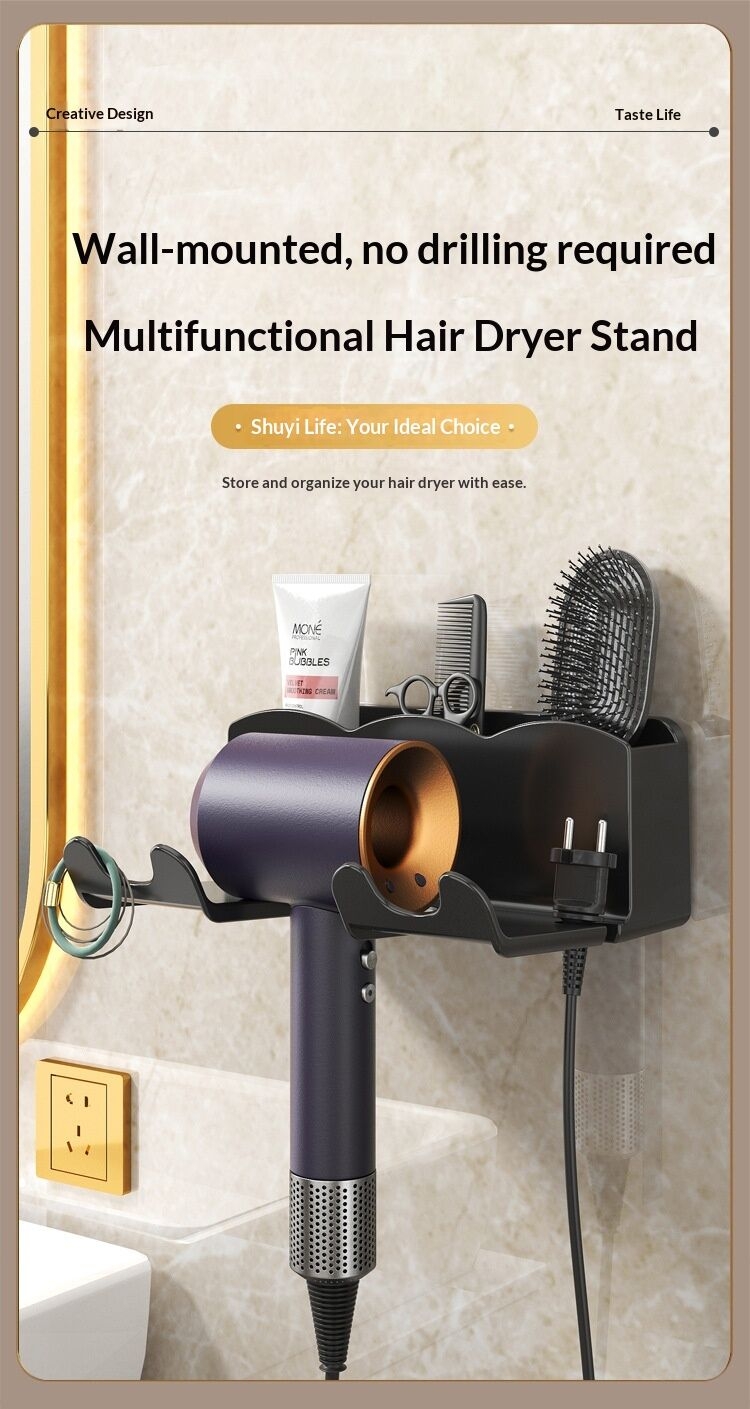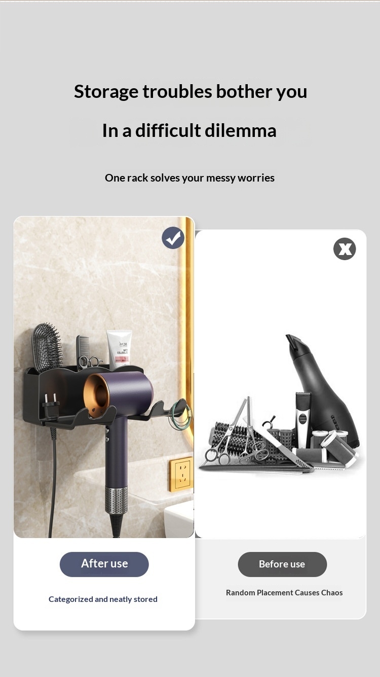 Hair Dryer Holder - It consists of two freely rotating rings and a cylindrical hairdressing tool storage. Blow dryer holder wall mounted for most hair dryers. At the same time, storage round barrel can store hairdressing tools, such as combs, razor and other makeup tools. Modern design enhance the aesthetic look of your bathroom, saving.space for putting the hair dryer.