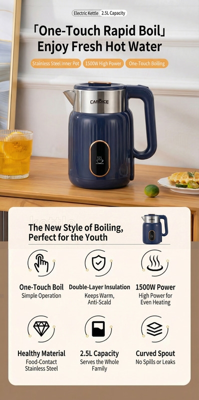 ✨️PoBoils water rapidly with 1500W. Features auto shut-off, boil-dry protection, and a removable filter✨️
