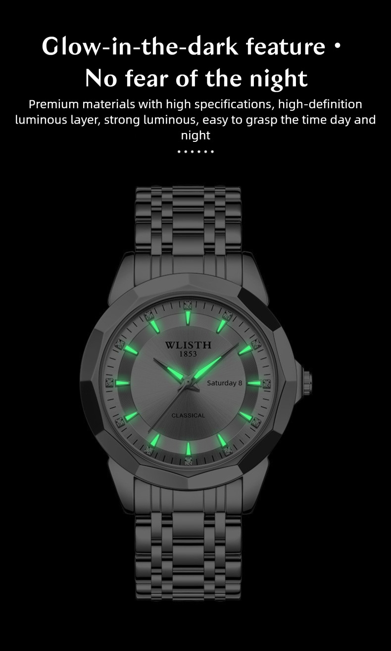 3. Luminous display, clear time reading at night: Both the hands and the scale are equipped with luminous functions, allowing for easy time reading even in dim light conditions. It combines practicality and a sense of technology.