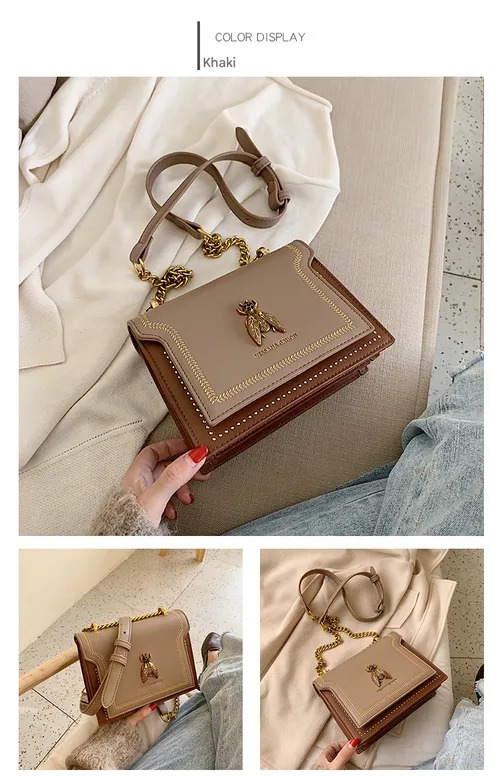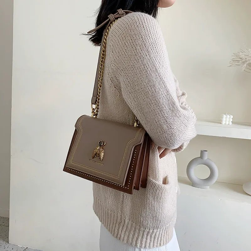 Women's Elegant Bee Patched Decor Chain Strap Crossbody Bag, Vintage Bee Decor Square Underarm Bag, Minimalist Temperament Quilted Design Shoulder Bag, Trendy Crossbody Bag for Daily Use, Fashionable Crossbody BagGH₵ 370.00Add to cart