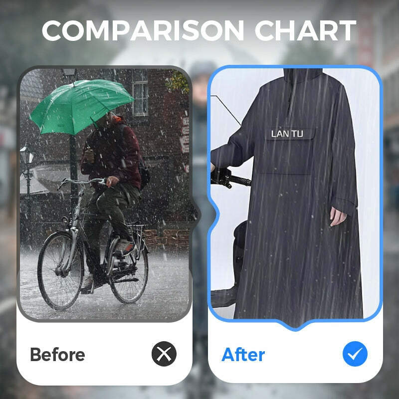 EXTENDED FOOT COVERAGE: The raincoat extends to cover your feet and footwear, preventing water from soaking your shoes and ankles. This thoughtful feature ensures your feet stay dry and comfortable throughout your commute.
