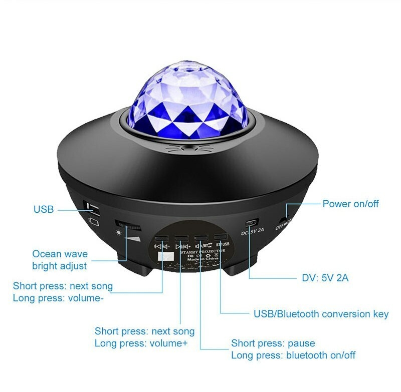 【Bluetooth speakers and timers 】 -- You can select your favourite music via Bluetooth or USB. High quality music and starry create a romantic and soothing atmosphere in the night. The timer option is more energy efficient, you can also project all the light at night.