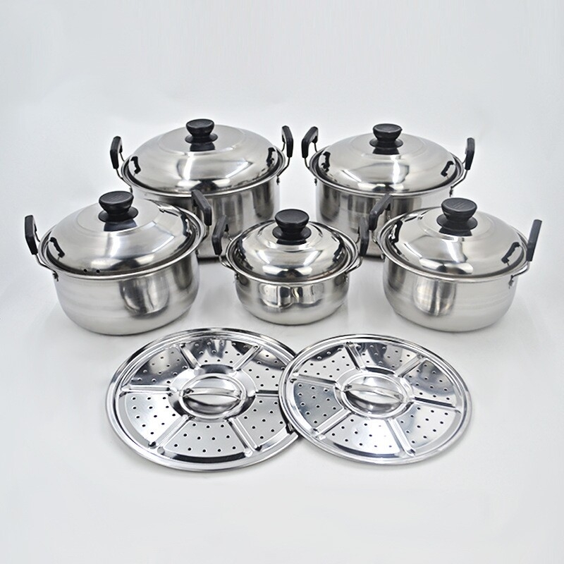 10 PCS Stainless Steel Cookware Set Cooking Pots With Lid And Steamer