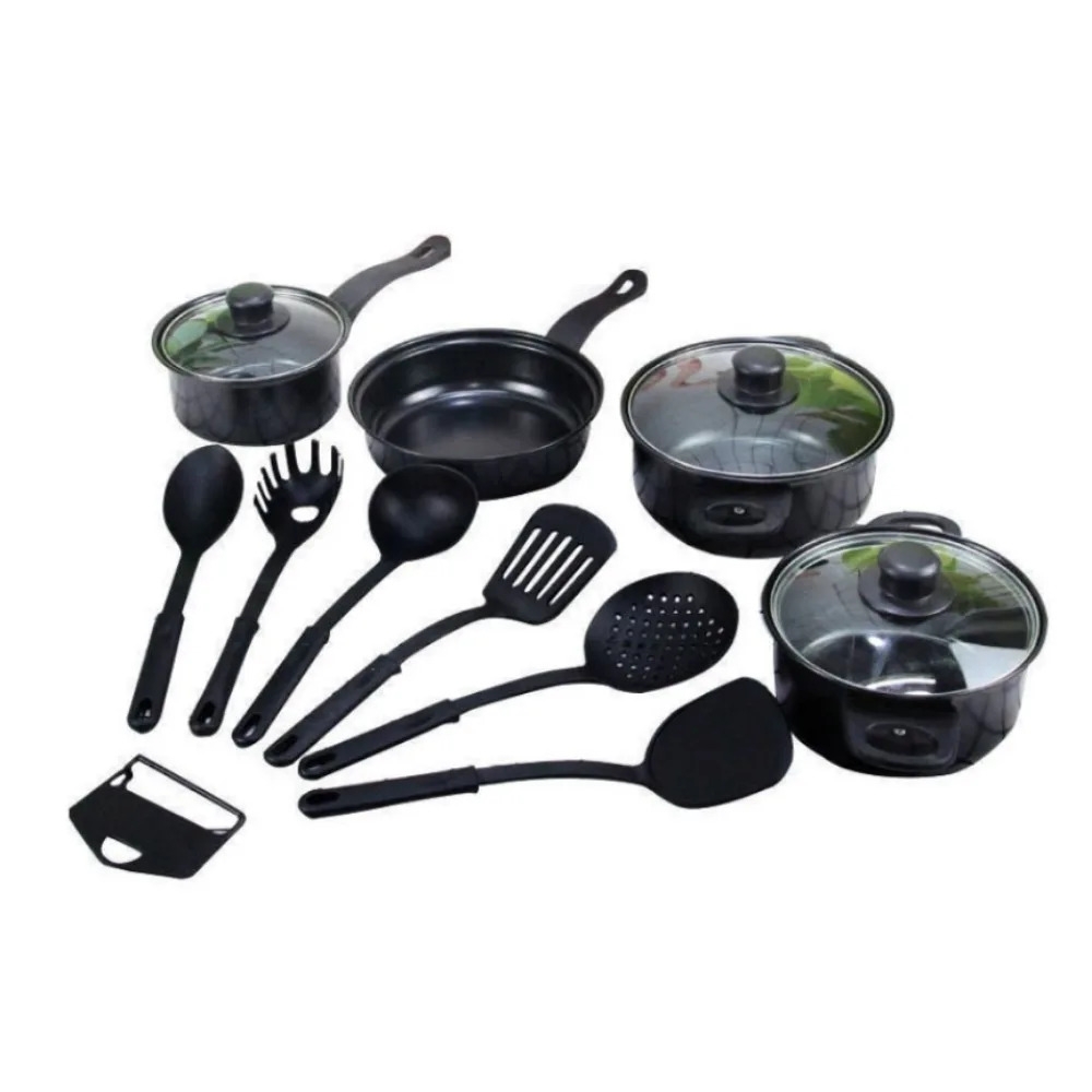 1X 13 piece set of cookware set milk pot soup pot flat bottomed small frying pan lid and shovel to form a pot set