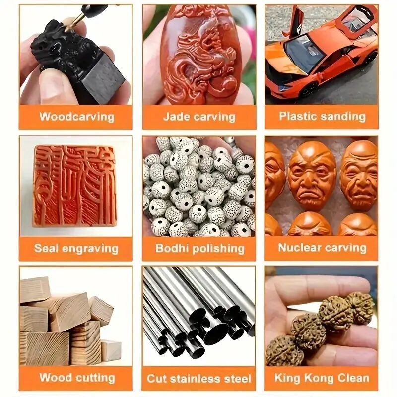 Complete Kit: Includes a variety of tools such as sanding drums, brushes, grinding wheels, and grinding heads to meet your needs for precise completion of various tasks.