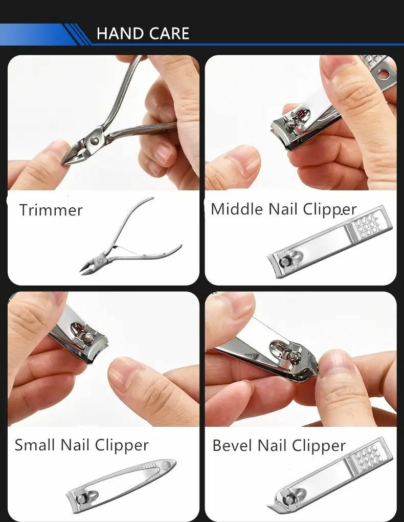 Includes 19 professional-grade tools such as nail clippers, cuticle trimmers, ear picks, tweezers, and more — covering all your manicure, pedicure, and facial grooming needs.