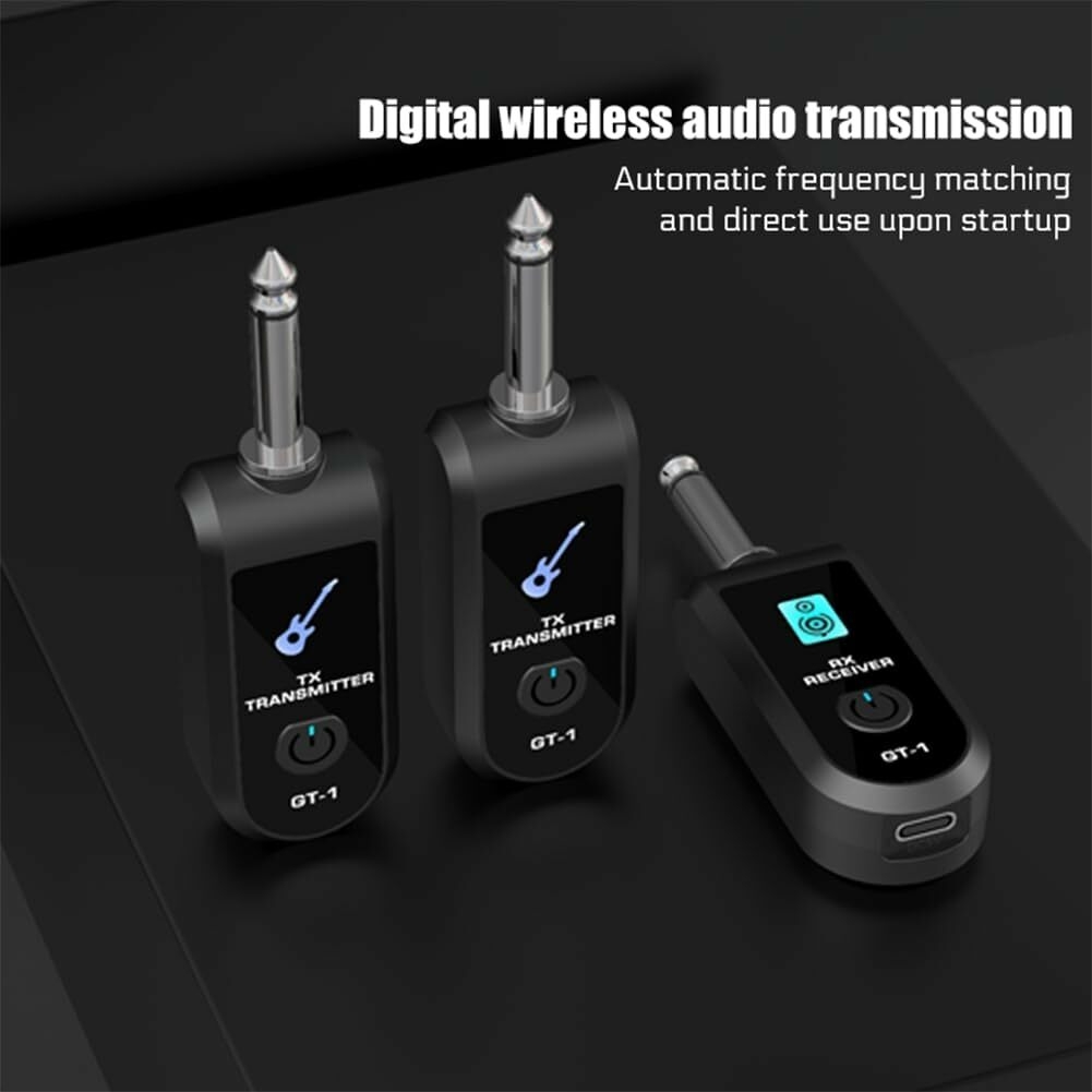 [Flexible and Convenient]: Easily compatible with different guitars and other musical instruments. No pairing required; simply switch the t-ransmitter and receiver to the same channel.
