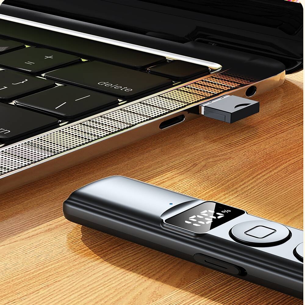 2.4GHz Wireless Flip Pen, Electronic Pointer, PPT Presentation Remote Control With Touch Screen Stylus Description: The wireless USB presenter remote control is a versatile gadget that will become an indispensable assistant for your presentation. It is a convenient and versatile wireless remote control for professional presentations. Supports Windows, Mac OS, Linux, Android operating systems No need to install additional programs. Just plug the receiver into the USB port to start using it. After the operation is completed, the receiver can be removed from the device body. Features: 1. [Plug and Play] When the receiver is plugged into the computer, the presentation clicker will connect to your PC without installing software. It can be easily connected to any computer with a USB 1.0\USB 2.0\USB 3.0 interface. The receiver transmitter is located in the position of the presenter, and it can be used after taking it out and plugging it in. 2. [Multi-functional and widely applicable] The PowerPoint presentation clicker supports hyperlinks, volume control, switching windows, black screen/full screen, page forward/backward, light pointer and other functions in one. Widely compatible with computer and laptop intelligent systems, it can be used for PowerPoint/Keynote. 3. [Ultra-long distance control] the wireless presenter remote control can reach up to 10 meters, and you can move freely around the room and interact with the audience or students. 4. [Laser pen cat toy] This presentation remote clicker is not only a PowerPoint presenter, but also can be used as a red laser pen for cats or dogs. You can use the red laser at home to play with your pets and relax after a long work day. 5. [Perfect assistant for presentations] A perfect tool for presentations, teaching and meetings. Specifications: Color: Black Special features: easy 360° control, wide compatibility, plug and play, red laser pointer Product size: 15.5*2cm Product weight: 0.3kg Remote control method: wireless radio frequency technology transmission Frequency: 2.4GHz Remote control distance: More than 200 meters Working voltage: 3.7V Working current: 6mA Laser power: 45mA Laser wavelength: 650nm red light Package includes: 1*Wireless pen 1*USB charger
