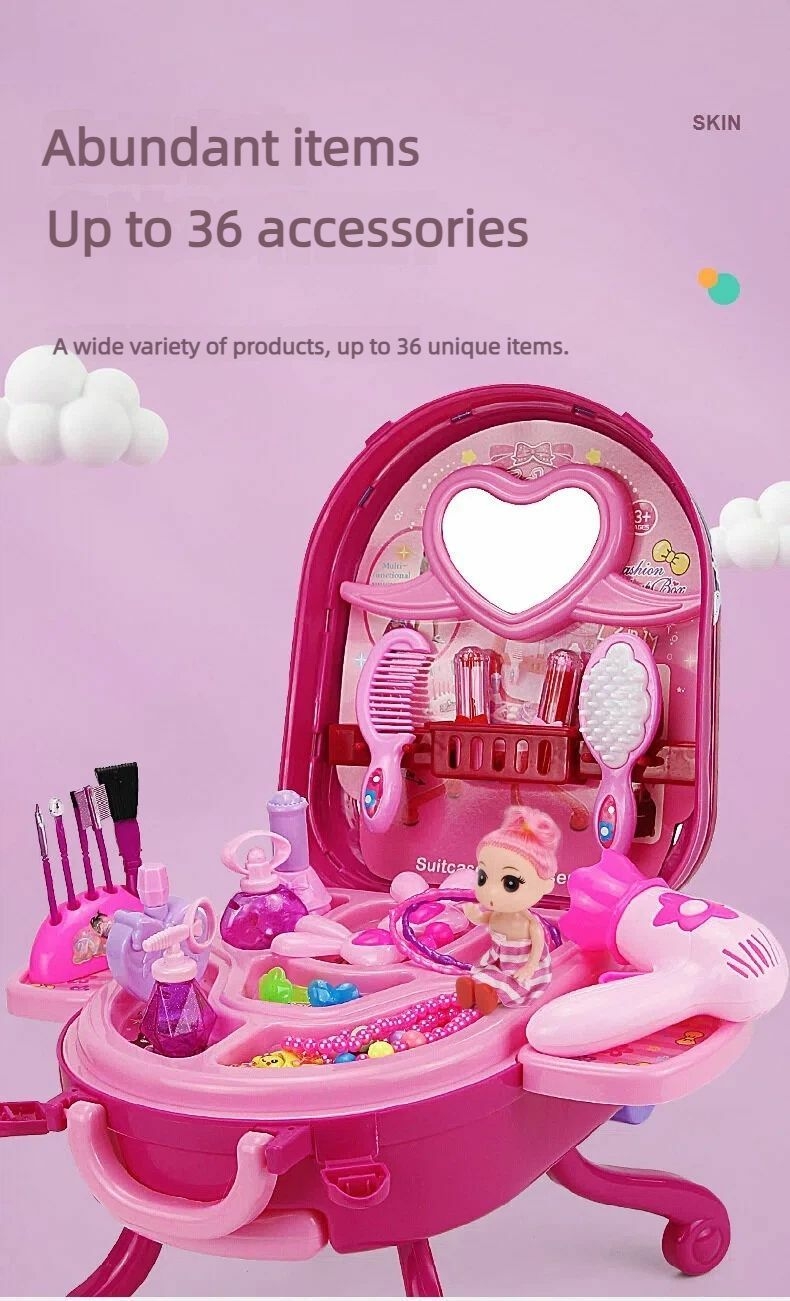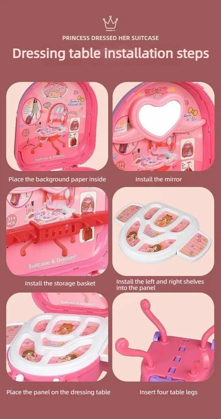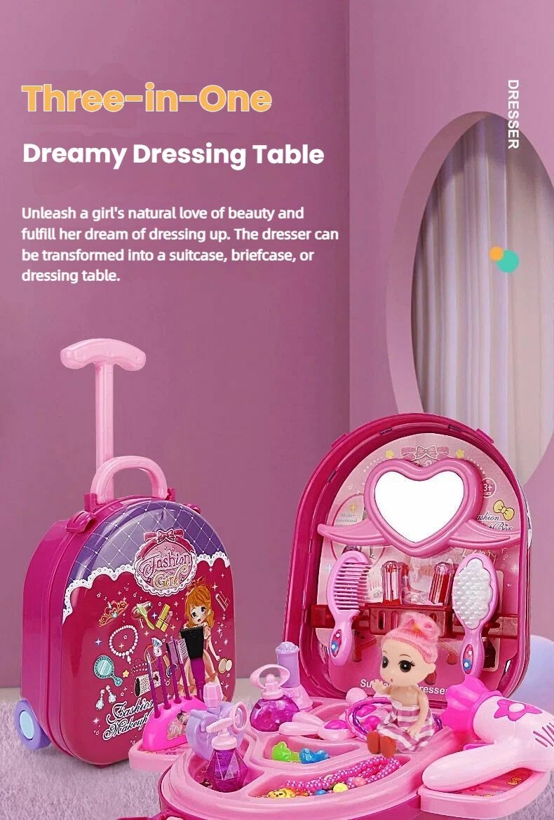 1.Three-in-One Dream Makeup Table: Unleashes girls' love for beauty, fulfilling a girl's dream of having a makeup station, and can be changes into a suitcase, a briefcase, or a makeup table.
