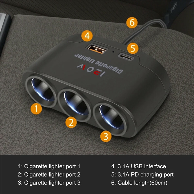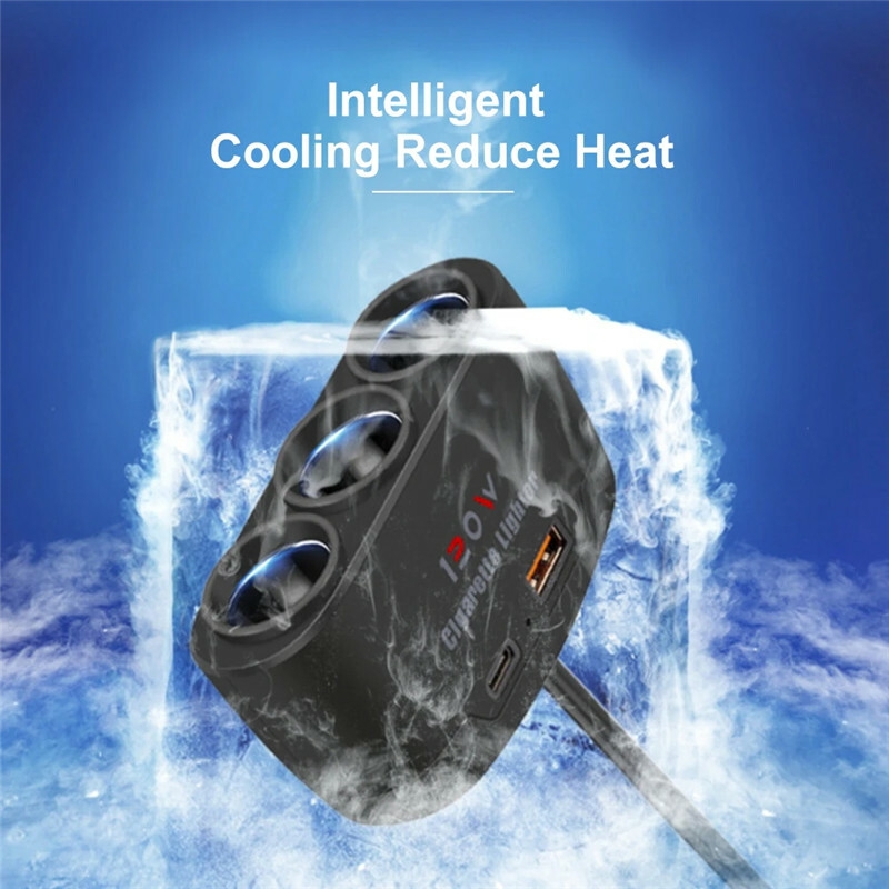 3-in-1 Power Adapter with USB + Type-C Ports, 120W High-Power Car Charger Plug