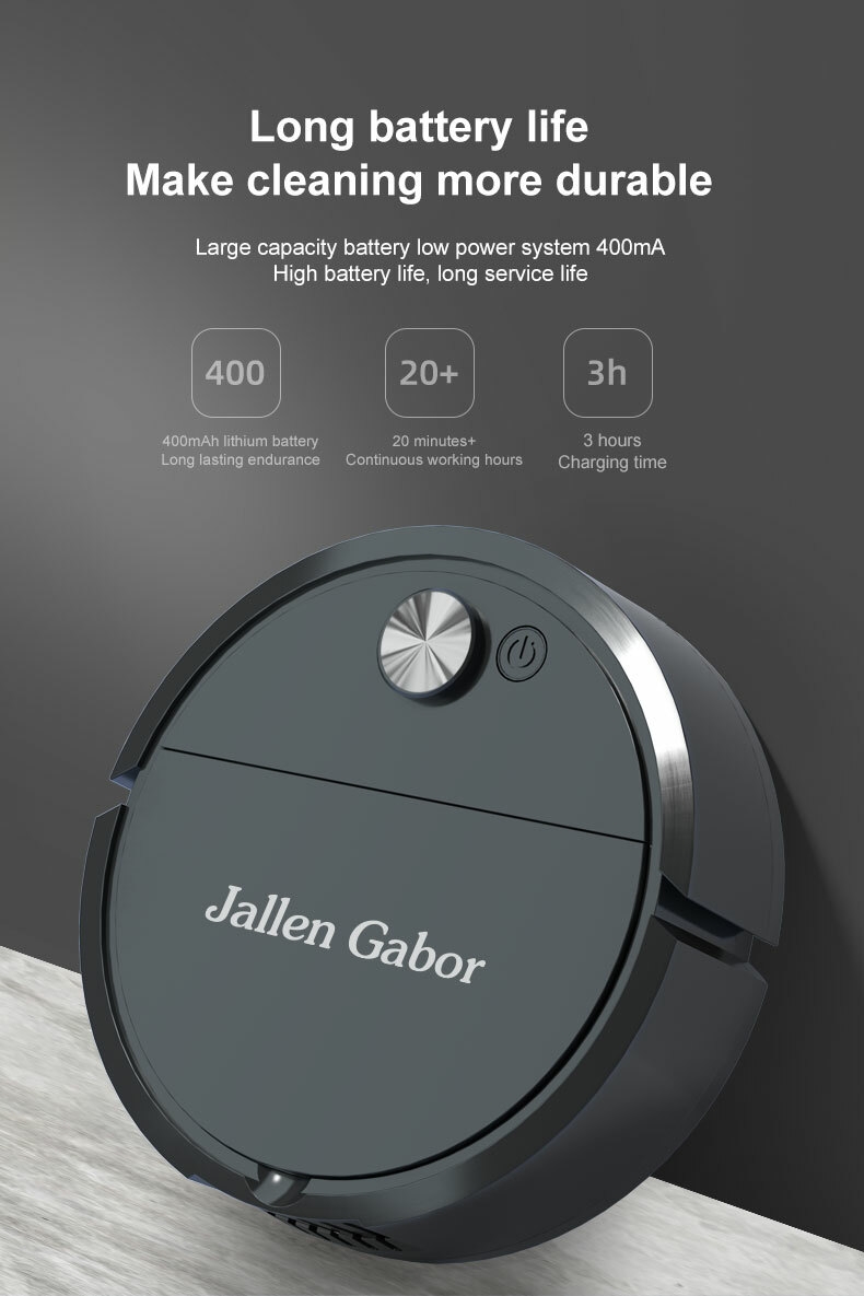 3 In 1 USB Smart Sweeping Robot Suction Vacuum Cleaner,Automatic Cleaning Mopping Floor-Super Powerful Suction Description: This floor cleaning machine is made of ABS material and features a versatile design to ensure your floors are spotless and hygienic. Experience convenient home cleaning with our small cleaner that can easily tackle dirt and grime. This innovative device combines functionality with elegance to elevate your cleaning routine, making it a great addition to any modern family seeking a pure living environment. Versatile and efficient, the small cleaner is suitable for a variety of environments such as offices and hotel rooms, and can seamlessly adapt to floors, carpets, and tiles. Perfect for busy professionals, housewives, and the elderly, use our cleaning machine to make housework simple and enjoyable. Features: 1. [Ultra-thin design] The 54mm low design makes it easy to use the vacuum cleaner under beds and sofas to clean the places where dirt is hidden under beds and sofas. 2. [Latest version of robot vacuum cleaner] It uses vacuum cleaning technology instead of using a roller brush like other robot vacuum cleaners. This brings the vacuum cleaner closer to the ground, helping to suck up hair, pet hair, lint, soot, and more. All without worrying about the brush getting caught in yarn or hair! 3. [Worry-free cleaning] The large wheels roll over the carpet. Multiple cleaning modes ensure easy cleaning while you're doing other things or nothing at all. 4. [Complete accessories] A 50ml large-capacity reusable and washable filter element holds all the dirt that needs to be sucked away. A single charge allows the vacuum cleaner to work for up to 40 minutes! 5. [Noiseless] Low-noise cleaning robot, with noise as low as 55 when cleaning, and intelligent anti-collision head-turning, allowing you to enjoy a quiet life. Specifications: Texture: ABS Color: Black Operating noise: 55dB Battery capacity: 3.7V/400mAh Cleaning function: Sweeping, Mopping, Vacuuming Size: 18x18x5.4 cm Package includes: Smart robot vacuum cleaner * 1