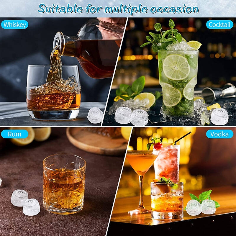 ✅【Rose Ice Tray Specification】 - The rose ice tray can make 9 beautiful rose ice cubes with a diameter of 3 x 3 x 3.8 cm at the same time.perfect in size fit for Scotch, whiskey, bourbon, cocktails and other alc oholic or regular beverages.