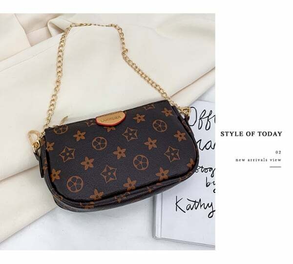 3in1 Womens shoulder waist Bag Portable Broadband Fashion All-Matching Crossbody Chain Pouch - Brown