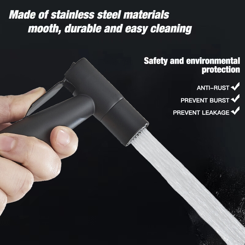Handheld Shower Set, Handheld Bidet Sprayer, Bidet Sprayer Set Description: This bidet nozzle set is beautifully designed to bring a comfortable bathing experience. The nozzle is ergonomically designed. The nozzle is equipped with a handle that can adjust the water pressure, which can provide different water flows according to the different needs of users when bathing, making the bidet an ideal place to relax. The bidet nozzle not only brings a pleasant bathing experience, but also makes cleaning easier. With a 40-inch long explosion-proof pipe, users can easily clean every detail of the toilet, so that the bidet and floor are always clean, providing users with a healthy and safe sanitary environment. Our bidet nozzle set has excellent durability and corrosion resistance. The nozzle is carefully designed to adjust the water flow intensity and spray angle, allowing users to get personalized bathing pleasure and cleaning experience. In addition, the set is simple and practical in design, easy to clean and maintain. You only need to wipe it with a mild detergent and a soft cloth to keep the spray head clean and hygienic. Features: 1. [High-quality material] This bidet hand shower set includes: bidet hand shower, 150 cm/40 inch long explosion-proof pipe and toilet spray g-un holder. The bidet hand shower is made of high-quality 304 stainless steel, with a highly rust-proof polished surface, scratch-resistant, corrosion-resistant and durable. Fine workmanship, good sealing, no water leakage problems, resistant to high water pressure and frequent use. 2. [Water pressure control design] This stainless steel nozzle is equipped with a handle that can control the water pressure, and a pressure control design is set inside the nozzle. Simply press the control lever to check the water pressure and remove stains easily. Users can choose the gentle flushing mode or the strong high-pressure flushing mode as needed to ensure that the needs of different cleaning scenarios are met. 3. [Easy to install] This stainless steel bidet spray head (outer diameter thread: 21 mm) is suitable for standard 1/2-inch shower hoses. Just hang the toilet spray g-un hook on the bracket, and then install the two ends of the explosion-proof pipe on the nozzle and water dispenser respectively. In this way, everyone can enjoy a comfortable and clean bathing experience without worries. 4. [Easy to use] This bidet flushing nozzle is equipped with an explosion-proof tube. This combination produces a strong flushing effect. Simply press the lever to easily control the water flow, and the water pressure is stable and uniform. Combined with the explosion-proof tube, it can be easily moved to clean the floor and toilet, effectively removing stains, bacteria and odors on the surface of the toilet. 5. [Wide application] This bidet water g-un flushing cleaner set can meet your different cleaning needs, such as: personal care, pet cleaning, toilet cleaning, and various hard-to-clean corners. It is also suitable for outdoor cleaning, car cleaning, gardening, etc. It is a good choice. Make daily cleaning easier and provide a healthier and more hygienic experience. Specifications: Color: Black Material: ABS, Stainless Steel Product Size: Bidet Hand Shower: 6 x 12 cm / 2.4 x 4.7 inches Stainless Steel Shower Hose Size: 150 cm / 40 inches Toilet Spray G-un Holder Size: 4 cm / 1.5 inches Package Included: 1 x Bidet Hand Shower 1 x Stainless Steel Shower Hose 1 x Toilet Spray G-un Hanger