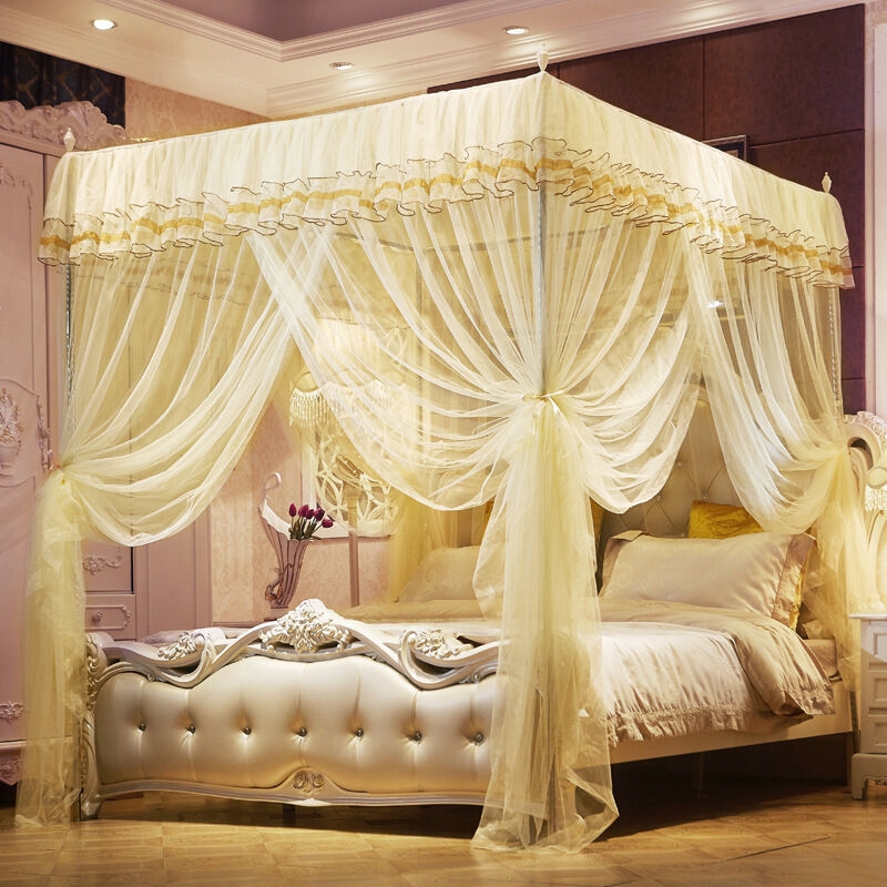 4 Corners Yellow Ultimate Protection Canopy Bed Curtain, Luxury Princess Mosquito Nets Without Stands For Double Bed (180 * 200CM)