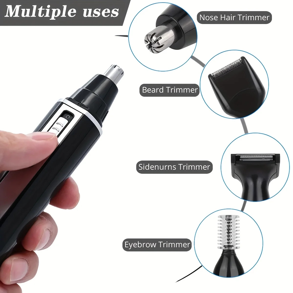 1.Multifunctional design: This nose hair trimmer is a 4-in-1 device that combines a nose hair trimmer, beard trimmer, and micro shaver in one.It is a versatile tool for all your grooming needs.