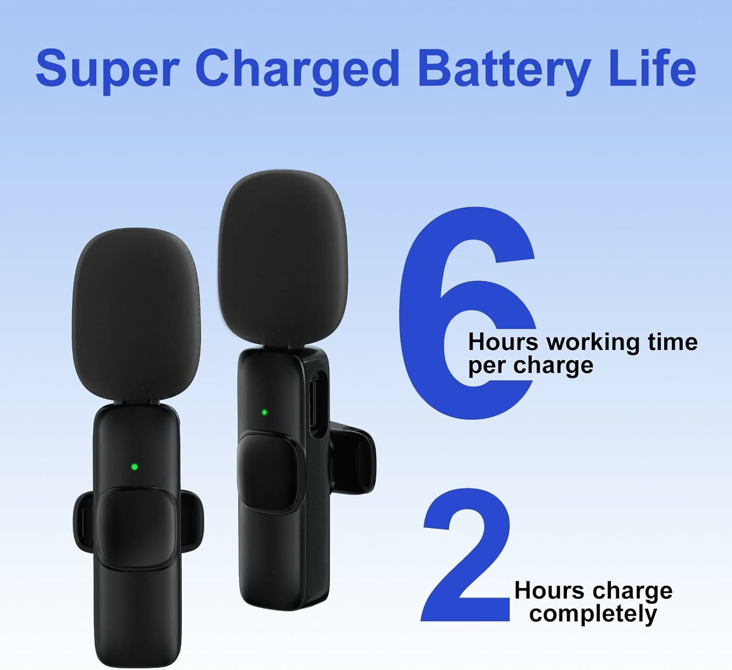 Rechargeable: The wireless lavalier microphone is built in 65 MAH rechargeable batteries up to 5-6 hours operation time with only two-hour charging time. When using the wireless microphone, you can charge the device at the same time.