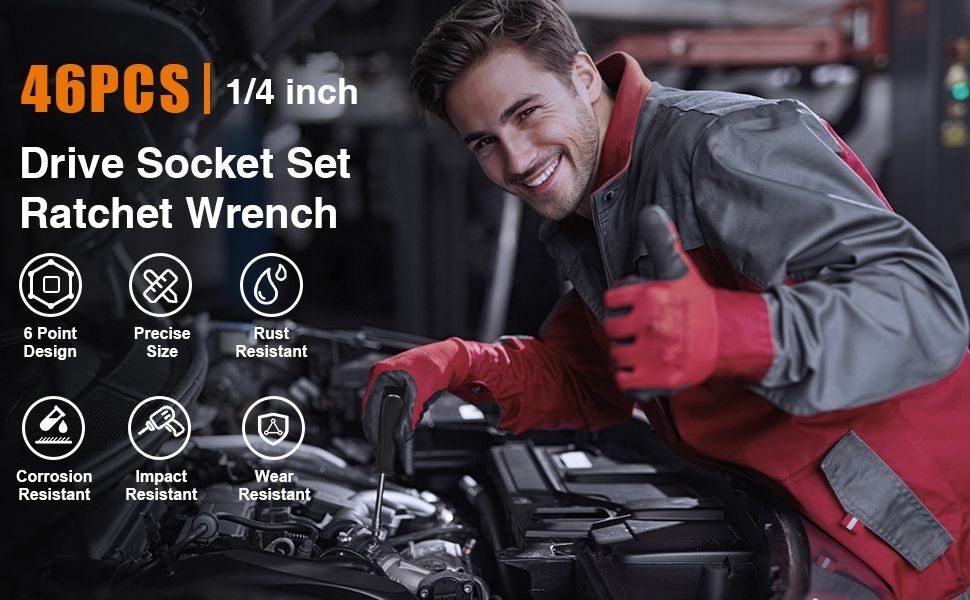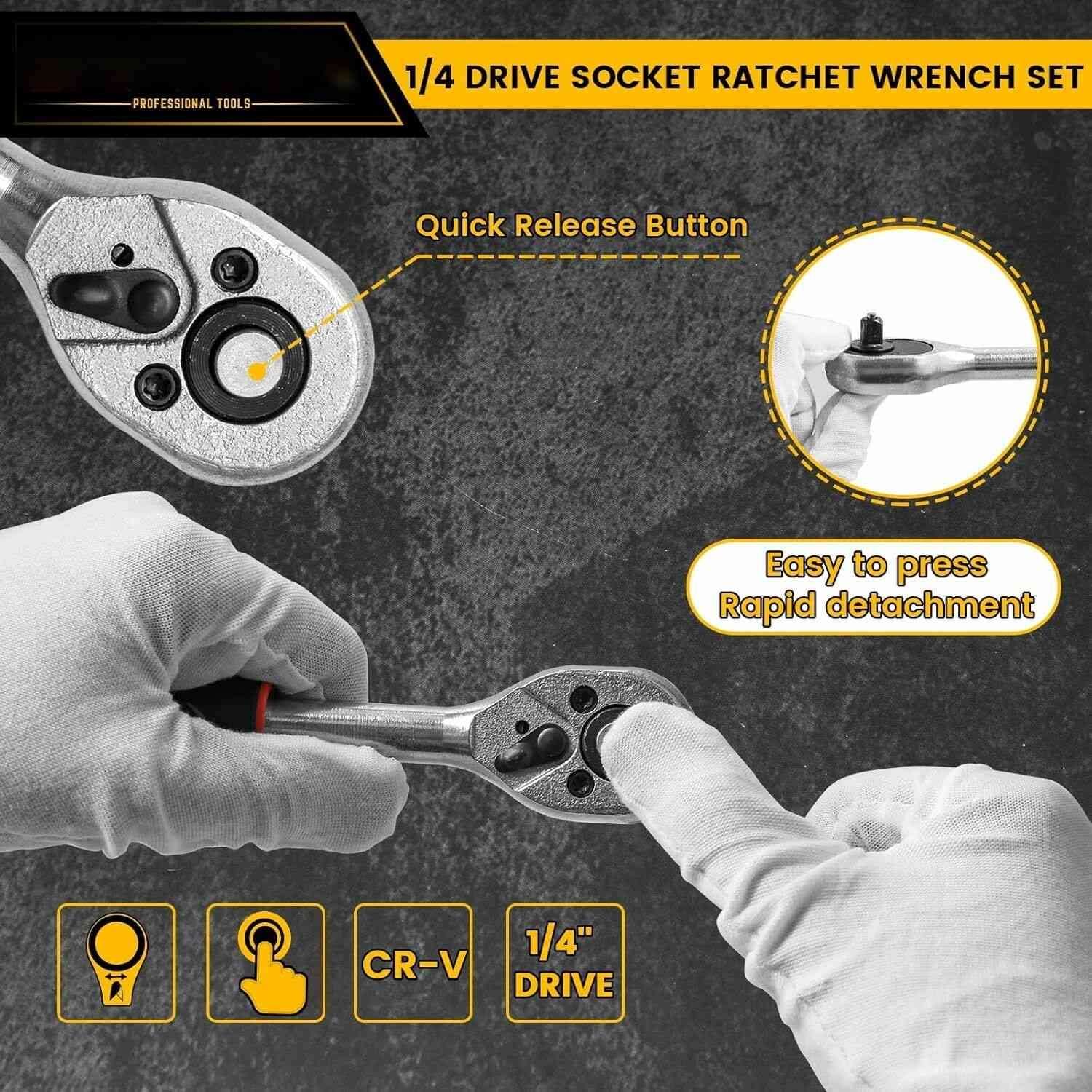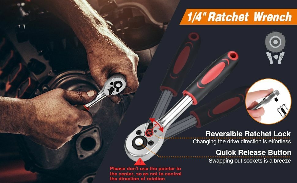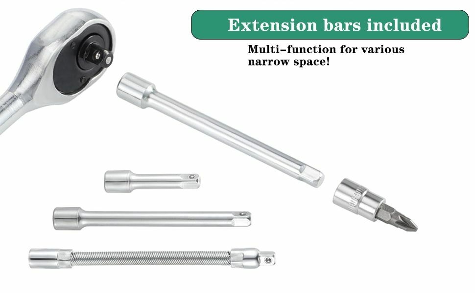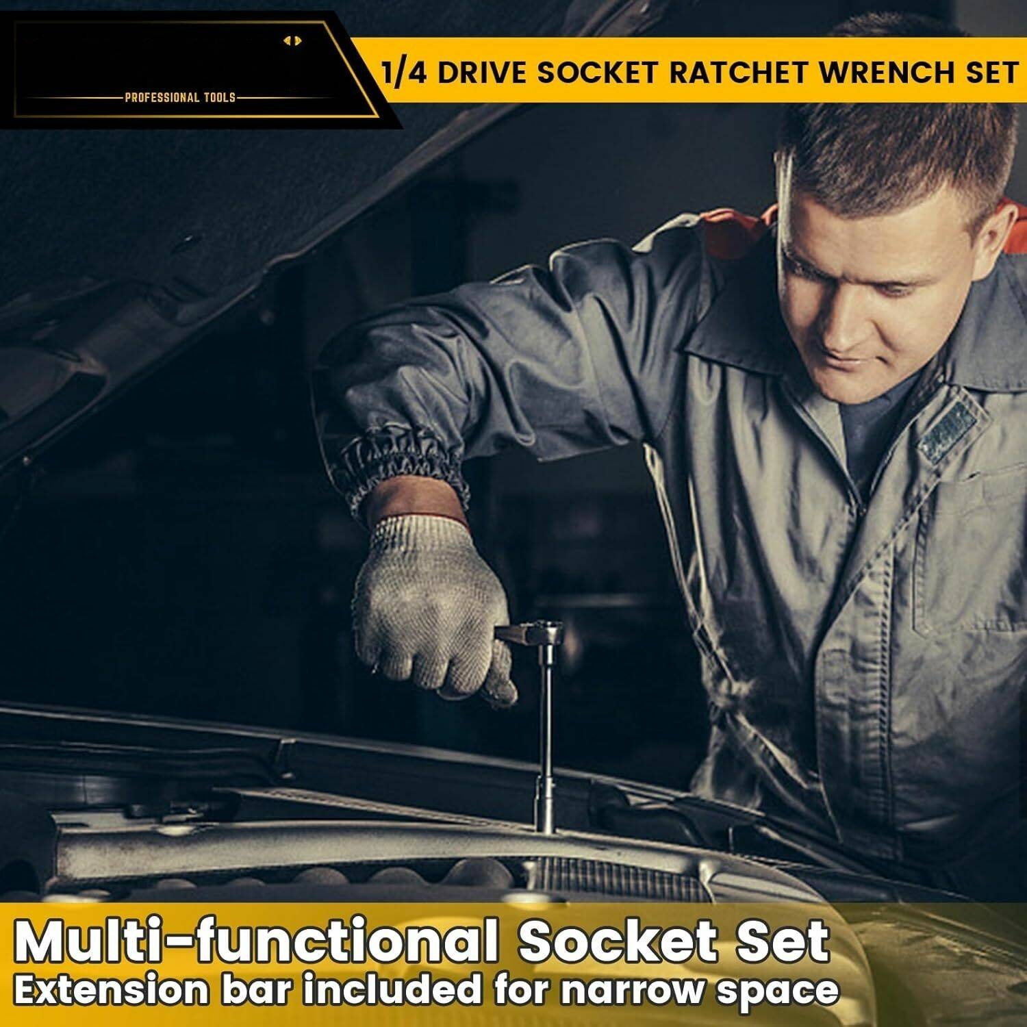 ♞ Material: Made of steel, the socket wrench set ratchet set is impact-resistant, abrasion-resistant, rugged, ensuring that your repair work is precise and reliable.