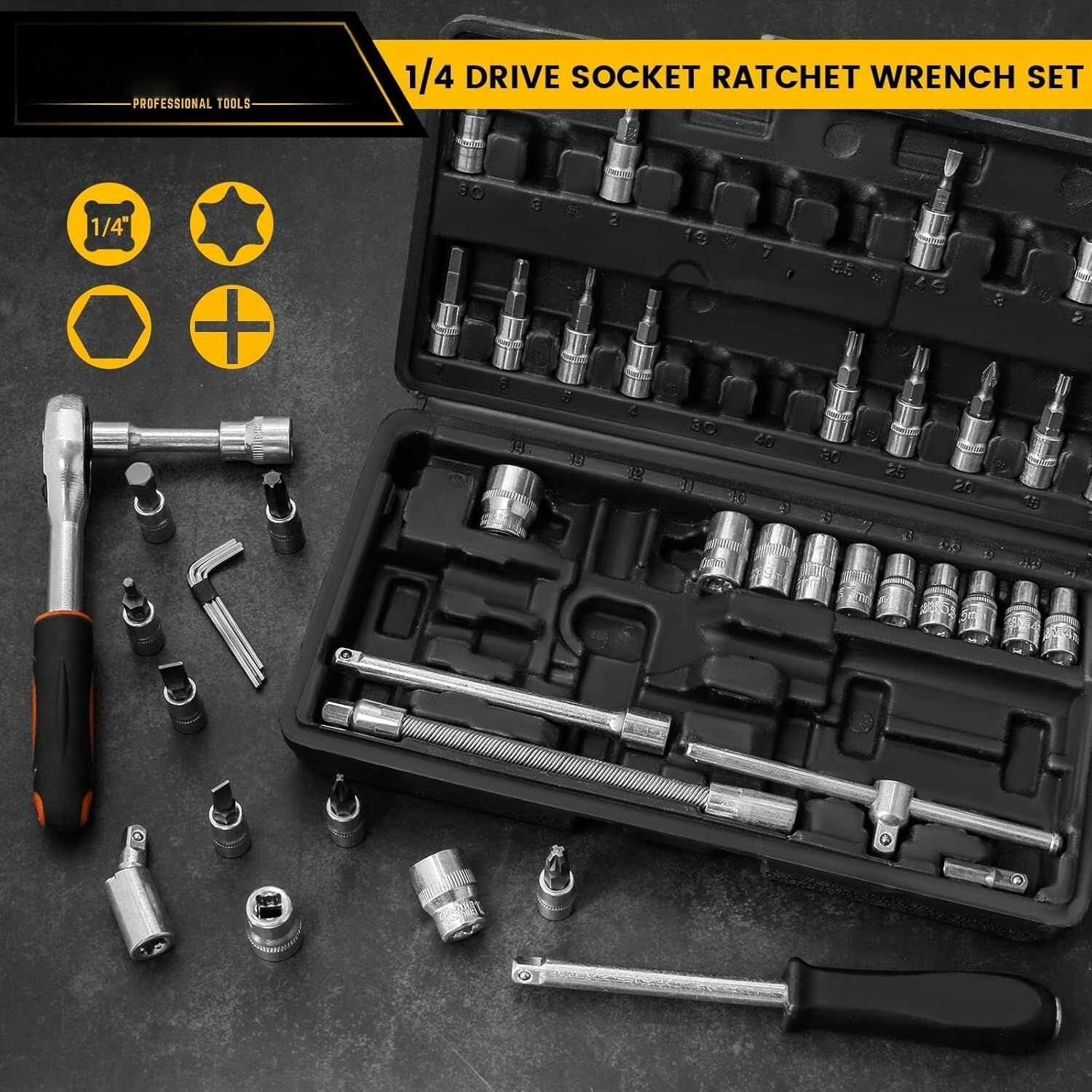 ♞ Easy to carry: The ratchet wrench kit box helps store all the parts so they don't fall out, and the portable, organized storage box is easy to transport and store, making it ideal for use in the garage, workshop or on the go.