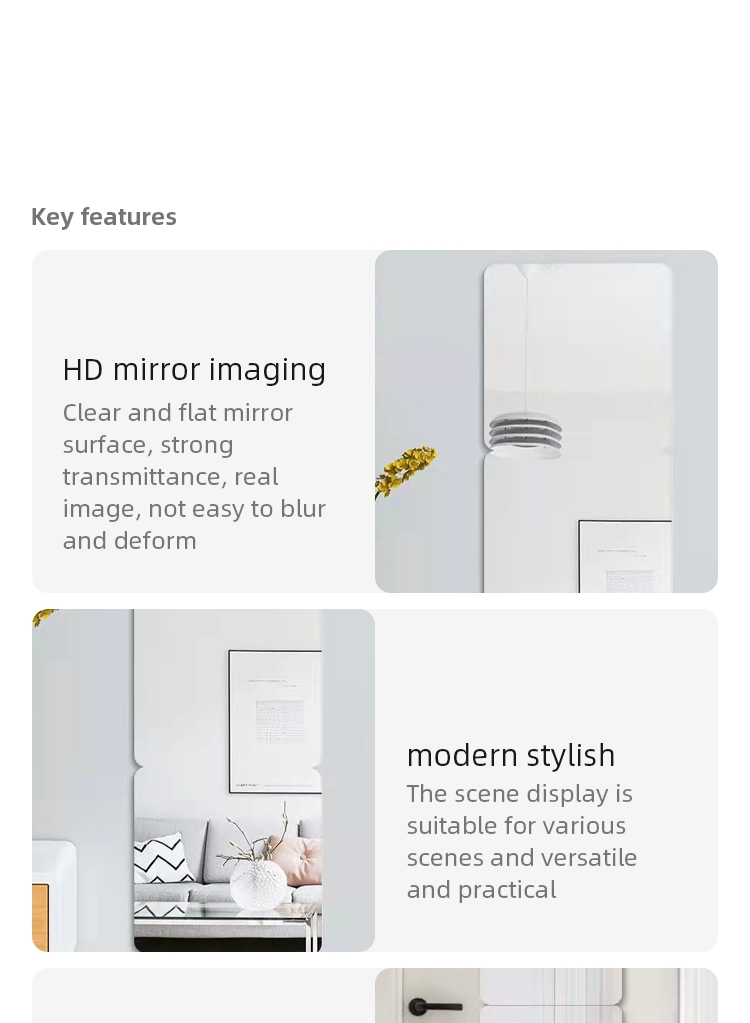 Durable material - The wall mirror is made of acrylic material, which is explosion-proof and shatterproof. It is more transparent than ordinary wall mirrors, and the reflection effect is not distorted, resulting in a brighter image.