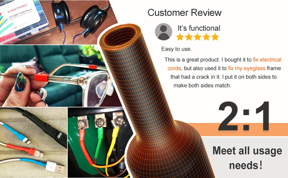 Key Features530 pieces of heat shrink tubing, 8 specifications to meet your different needsThe hot air gun has multiple functions and can be used for heating shrinkage, DIY handicrafts, etc.The temperature of the hot air gun is not adjustable. In theory, it can reach 200 degrees in a few seconds.The hot air gun should not work for more than 10 minutes, and blow at a 45-degree angle to avoid heat absorption.
