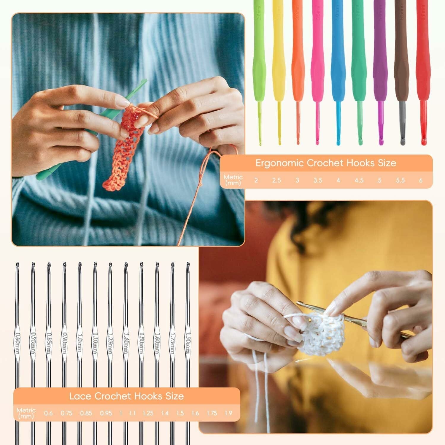 【Smooth and Longer Hook】Our crochet needle set have smooth edges and no burrs, can glide effortlessly and avoid snagging yarns, makes your crochet work faster and more efficient. The longer hooks can give more space when your crochet needs more loops. Great crocheting kit for beginners, crochet hooks for arthritic hands, ergonomic crochet hook set!
