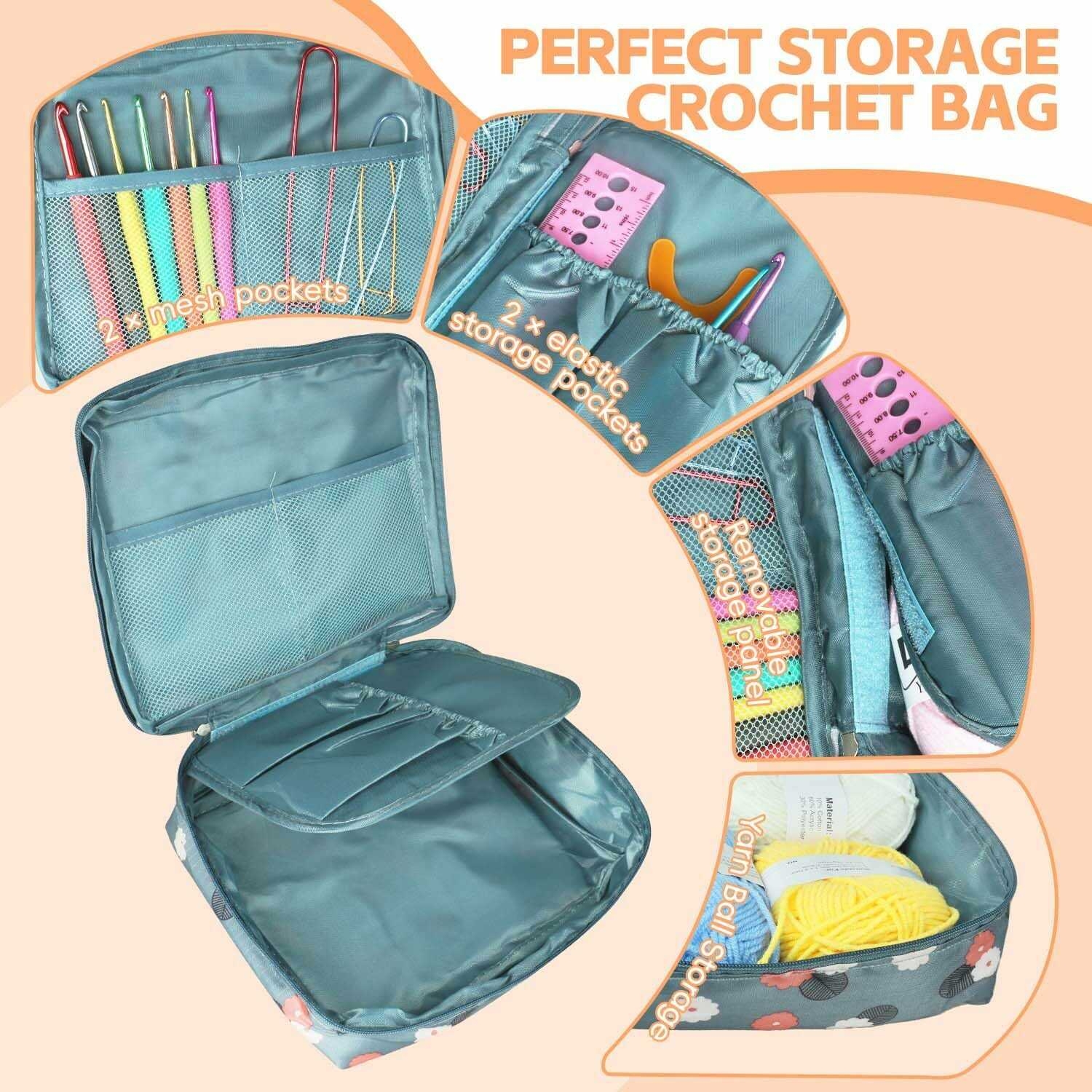 [Portable Storage Bag] The inside of the bag is separated by a mesh bag and an inner bag, which can help you store all crochets and accessories neatly and keep them in order. Suitable for travel anywhere or crochet.