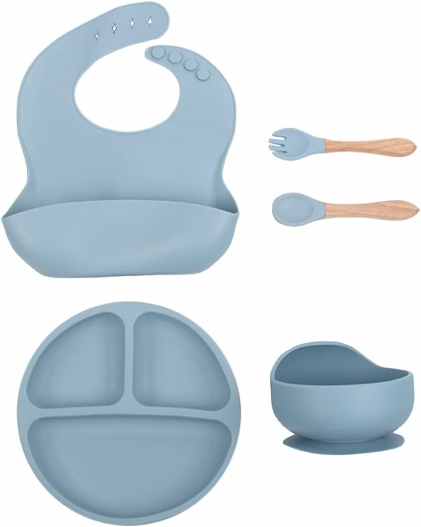 ✔ Thoughtful Design: The plate features compartments for easy food sorting, the bib catches dropped food, the bowl has a suction cup to prevent spills, and the fork and spoon are comfortable for baby's hands.
