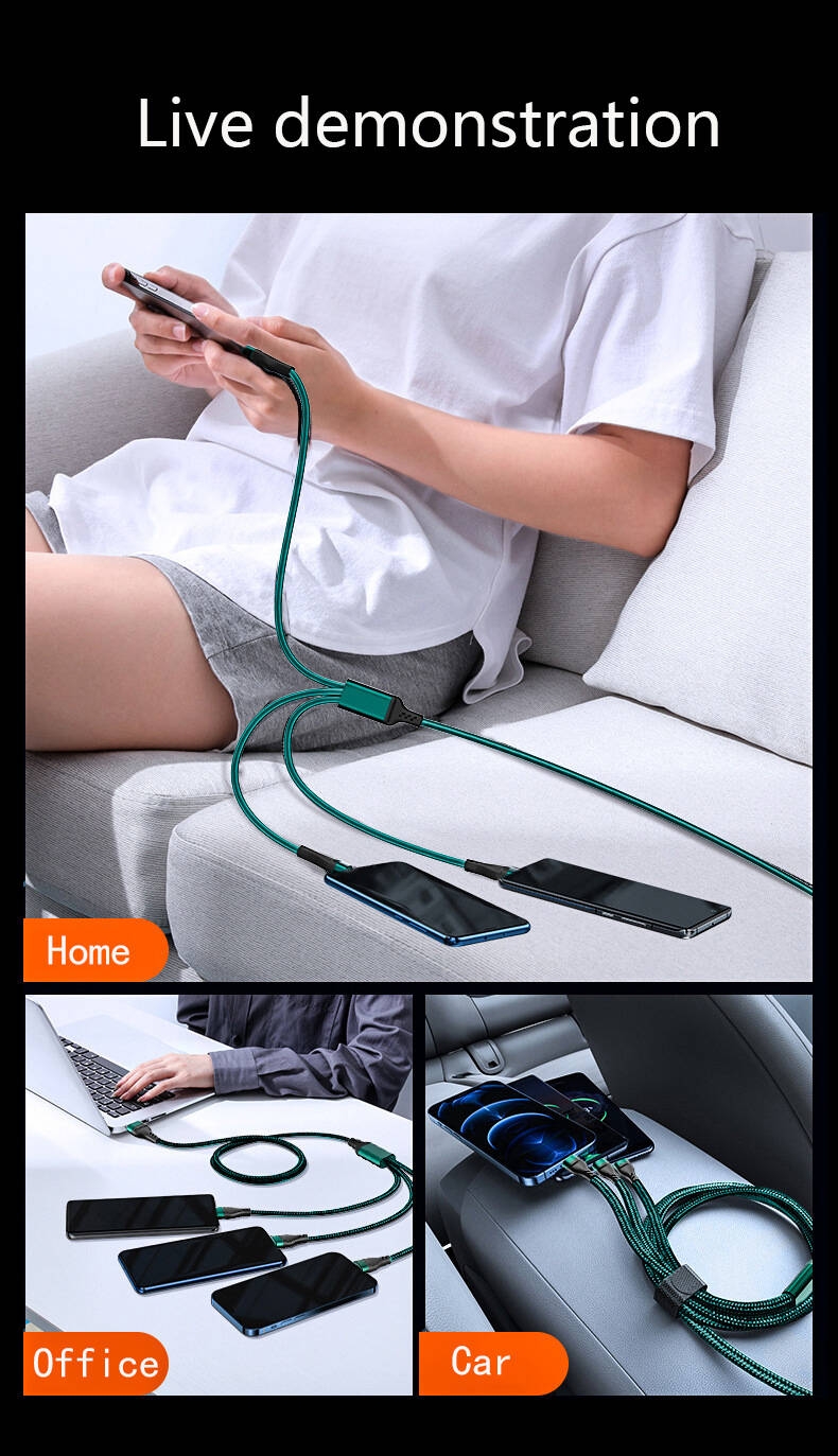 So why wait?Get your hands on this fast charging cord which comes with lightning and micro USB connectors, TYPE-C connectors, and more.Invest in the 6A 3in1 Nylon Fast Charging Cord, the ultimate choice for a universal multiple ports charger.