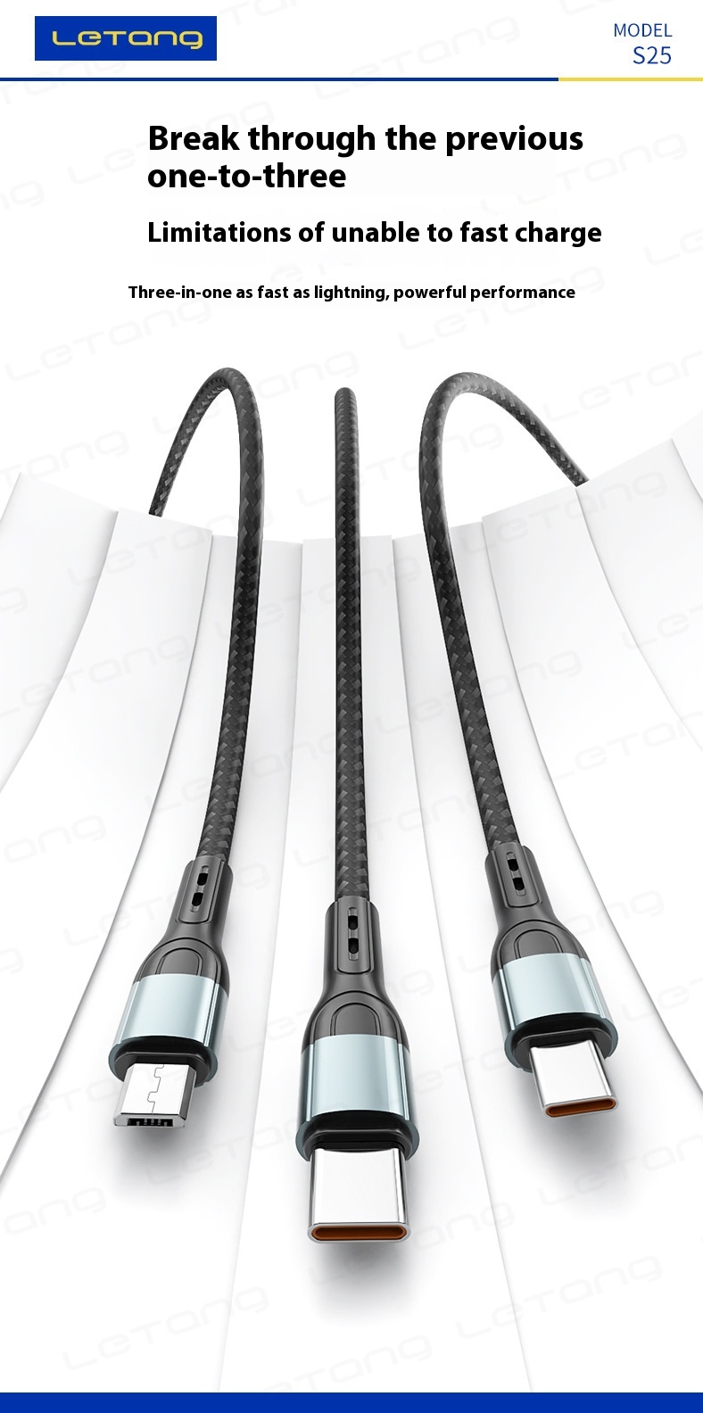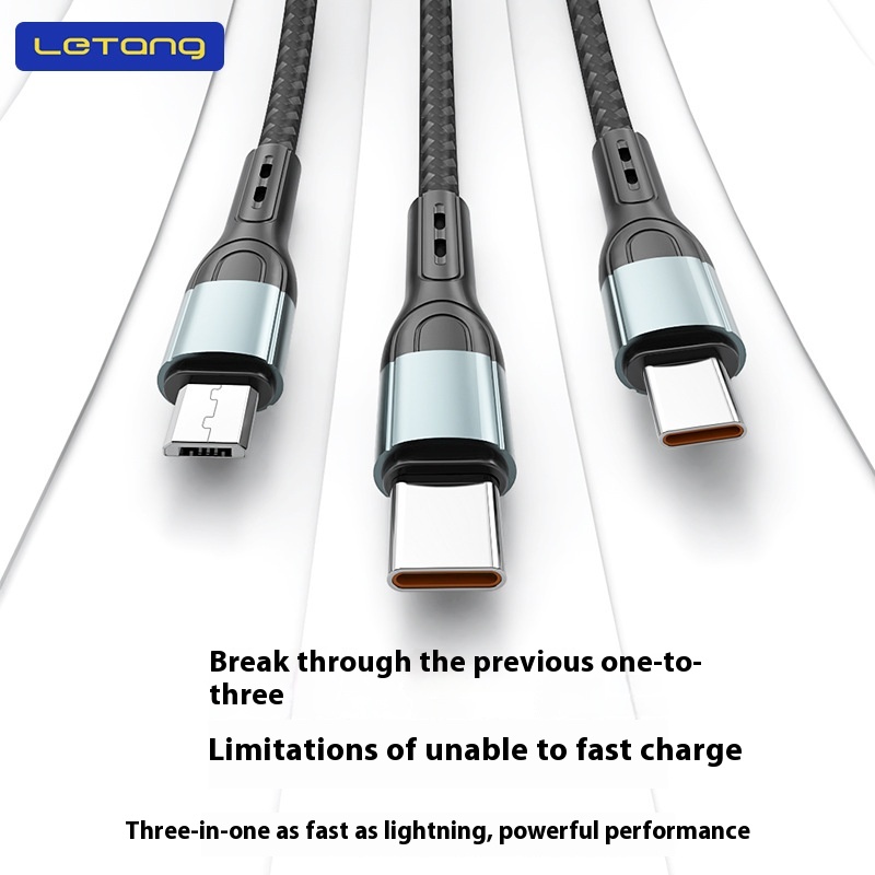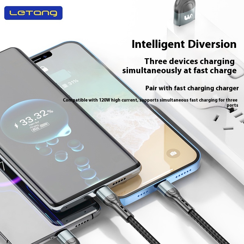 Convenient one to three design, supports simultaneous charging of three different devices, supports 6A fast charging, high-power supports 100W super fast charging, Type-C supports data transmission, anti breakage design, double bending resistance, not afraid of pulling, strong and sturdy wire, durable and resistant to pulling, long-lasting, and more durable.
