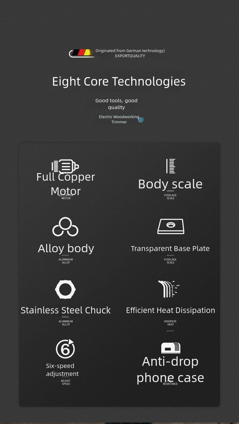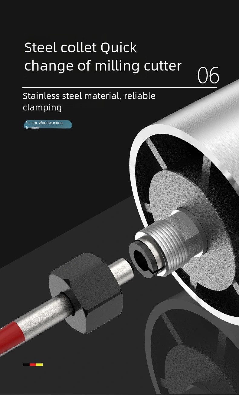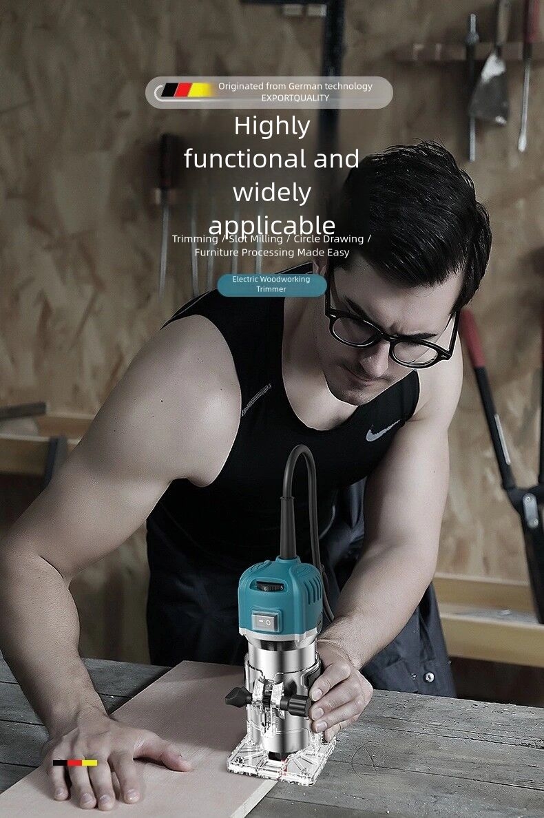 Perfect for carpenters and DIY enthusiasts, this router trimmer allows precise cutting and shaping when making cabinets, tables, doors, and other wooden furniture.