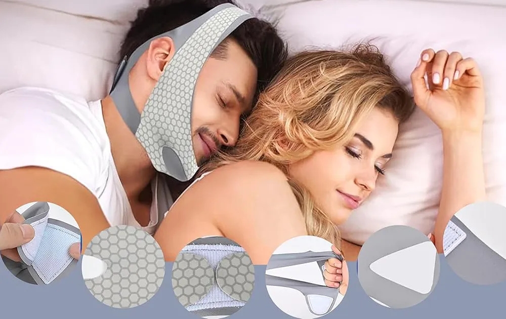 {Anti-snoring belt & face belt} Most snorers sleep with their mouths open. The overhead fixed design of the anti-snoring belt fixes the lower jaw and closes the mouth, naturally inducing nasal breathing.