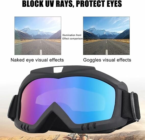 【High-quality materials】Motorcycle goggles are made of PC lenses, high-definition vision, true colors, strong and tough lenses, and arc-shaped design can provide you with a broader field of vision. The glasses are strong, not fragile and more durable.
