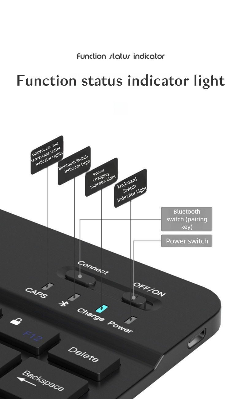 Product Features: 10-inch Bluetooth Keyboard & Dual-Mode Mouse Combo. The keyboard uses Bluetooth, and the mouse supports both Bluetooth and 2.4G. Universally compatible with Android, Windows, and iOS devices. Offers quick response, a portable design, and long battery life—crafted for mobile Product Attributes: Interface: Keyboard (Bluetooth), mouse (Bluetooth, 2.4G)