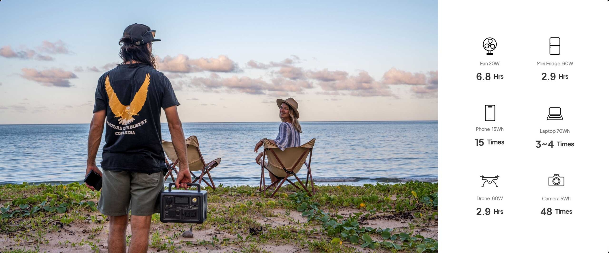 EB3A is compact enough, but you can count on it with big jobs. Whether it be small blender, mini rice cooker or small refrigerator, EB3A gets you all covered thanks to the 600W AC Pure Sine Wave Inverter (1200W surge) and an impressive 268Wh capacity.