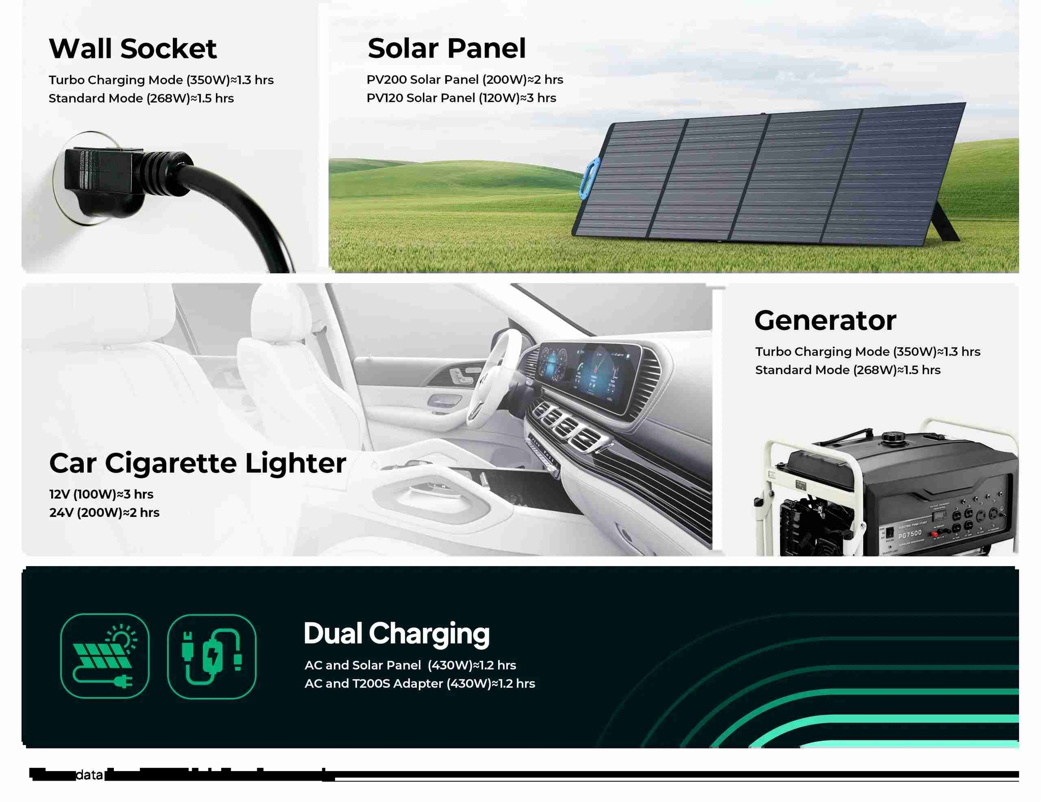 Go for an off-grid living anytime from RV camping to wilderness exploration with no fear of losing power. BLUETTI EB3A can be recharged in every way possible, either via AC, solar panels, car, generator, AC+Solar, or AC+Adapter, leaving you only peace of mind on the road.