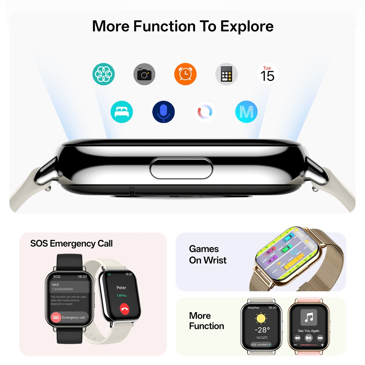 Product Features: Featuring a 1.83-inch HD large screen, this smartwatch delivers a clear visual experience. Built with a rugged body, it supports Bluetooth calls, real-time message notifications, and health monitoring. With long battery life and wireless charging, it includes multiple sports modes and customizable menus to meet diverse needs. Product Attributes: Operation mode: Touch type + key type