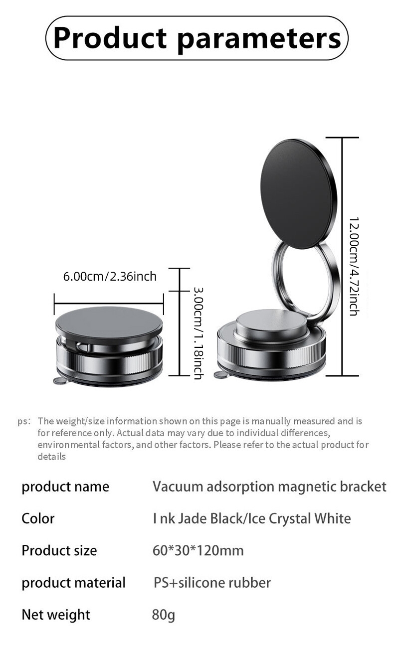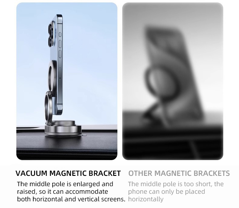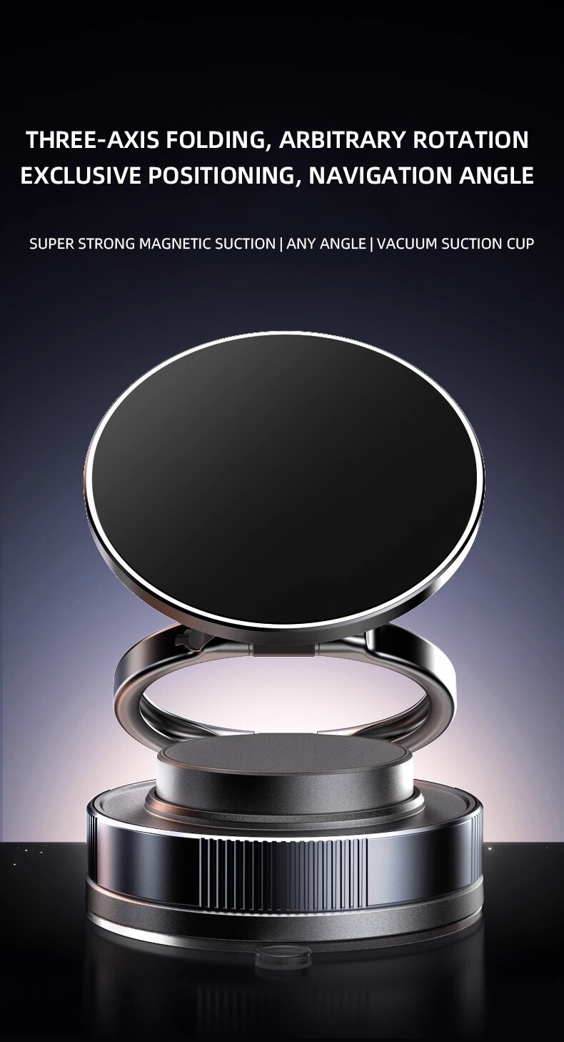 This vacuum suction cup mobile phone magnetic holder is specially designed for car navigation. It adopts advanced strong magnetic suction technology and three-axis folding and rotating design to ensure that the mobile phone is stable and does not shake under various road conditions.