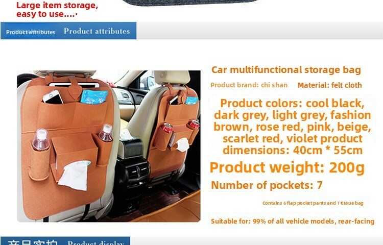 Key Features Usage location: Seat back Style: Car Seat Back Bag Color: Brown Applicable scenarios: Seat backs, etc Storage Supplies Type: Storage Bags Usage: Hanging type