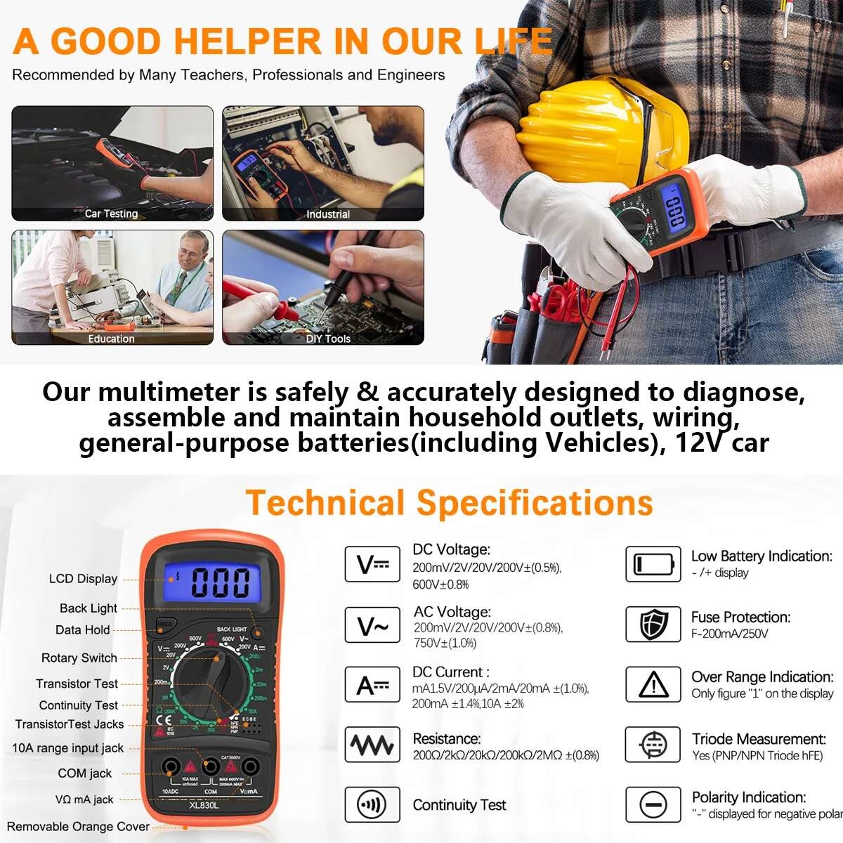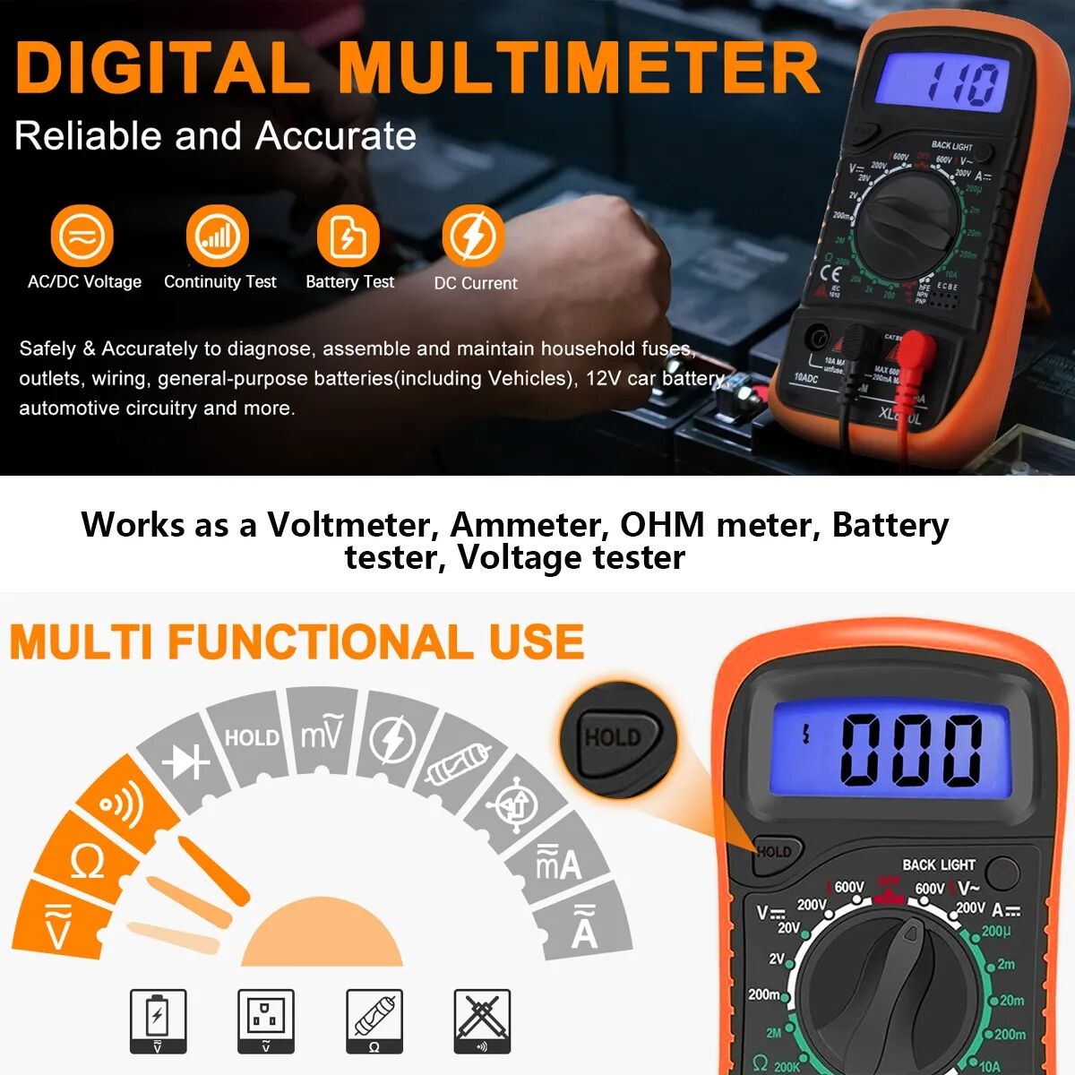 This instrument is a pocket sized digital multimeter that can be used to measure parameters such as DC voltage and AC voltage, DC current, resistance, diodes, and on-off testing. It is an ideal tool for laboratories, factories, radio enthusiasts, and families.