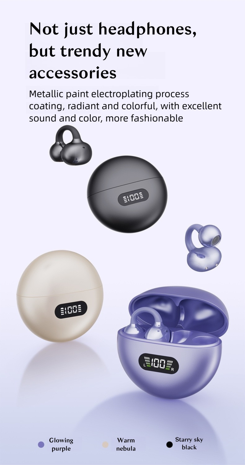 Product Features: Experience sound freedom with our ergonomic earclip headphones. Designed for all-day comfort, they stay secure even during the most intense movements. Featuring advanced directional sound transmission and a immersive stereo soundstage, your audio remains private with minimal sound leakage. Product Attributes: Transmission range: 15 meters