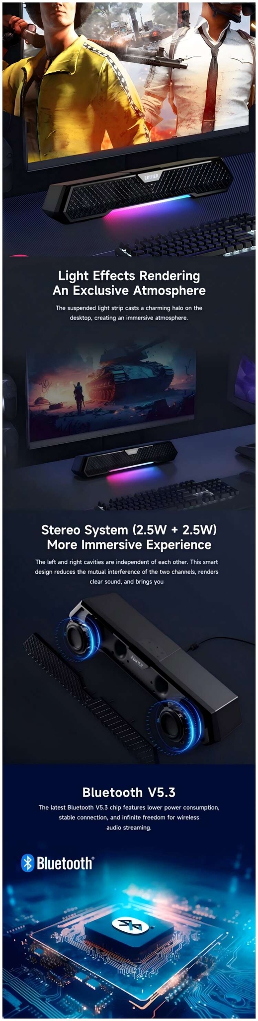 Key FeaturesEnjoy cool RGB light effects with a savvy design enclosure that fits and blends well with modern desktop/tabletop settingEnjoy the great-quality music with high-quality 52mm drivers and InvertersMultiple connections with Bluetooth, USB type-AHumanized interaction design, easy operation by FULL control touch panelClear call with microphones built-in